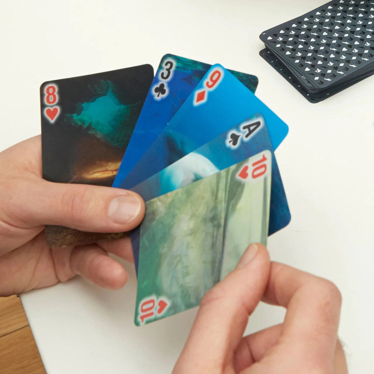 For budding card sharks: shark cards! Each of these beastly cards is holographic — move the card to see the sharks move. Each card is different, so there's 52 different shark images to observe.