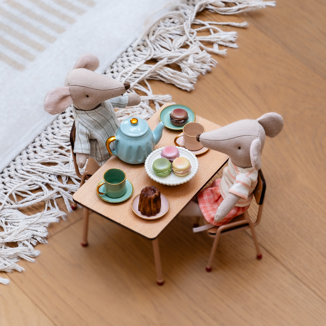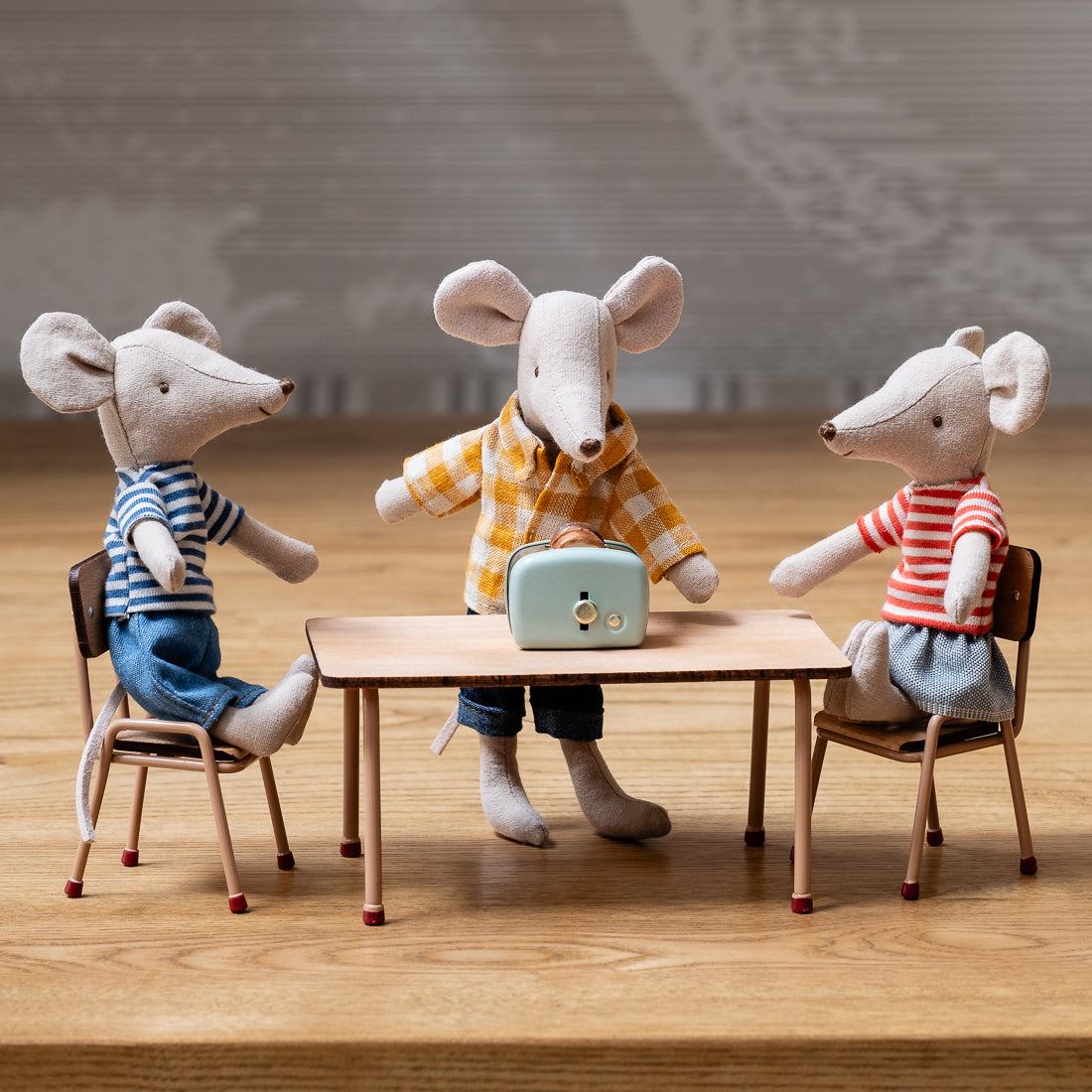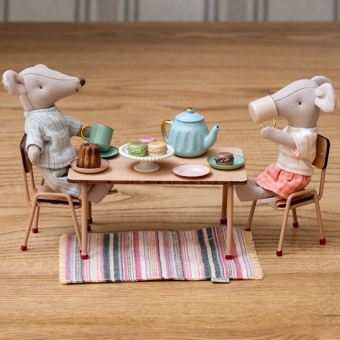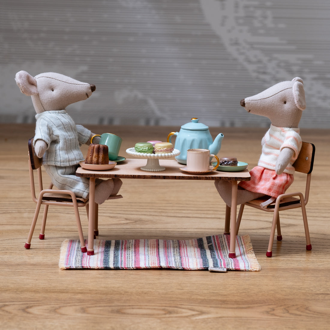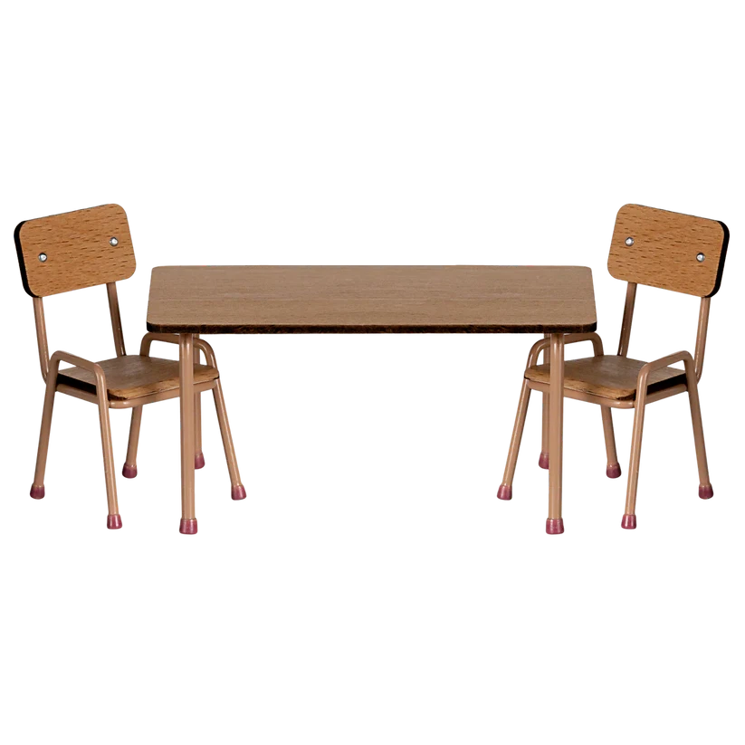 Maileg table and chair set, mouse - dark powder