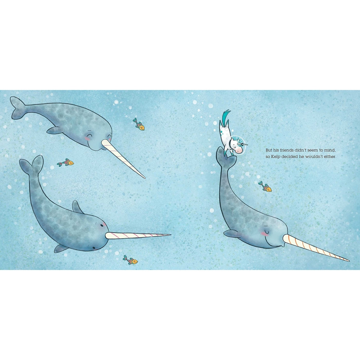 Growing up in the ocean, Kelp has always assumed that he was a narwhal like the rest of his family. Sure, he’s always been a little bit different—his tusk isn’t as long, he’s not as good of a swimmer, and he really doesn’t enjoy the cuisine. Then one night, an extra strong current sweeps Kelp to the surface, where he spots a mysterious creature that looks just like him! Kelp discovers that he and the creature are actually unicorns. The revelation leaves him torn: is he a land narwhal or a sea unicorn? But perhaps, if Kelp is clever, he may find a way to have the best of both worlds.