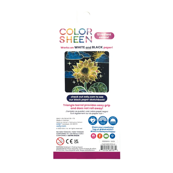 Unleash the power of lustrous color with the Color Sheen Metallic Colored Pencils. This set of 12 shimmering pencils offers a unique palette designed to make your artwork shine, especially on black paper. With a smooth coloring experience and an easy-grip triangular barrel, artists of all ages can effortlessly glide over paper, watching their creations reflect light. Whether you're sketching on white or experimenting with the depth of black paper art, these pre-sharpened pencils ensure every stroke is infused with brilliance!