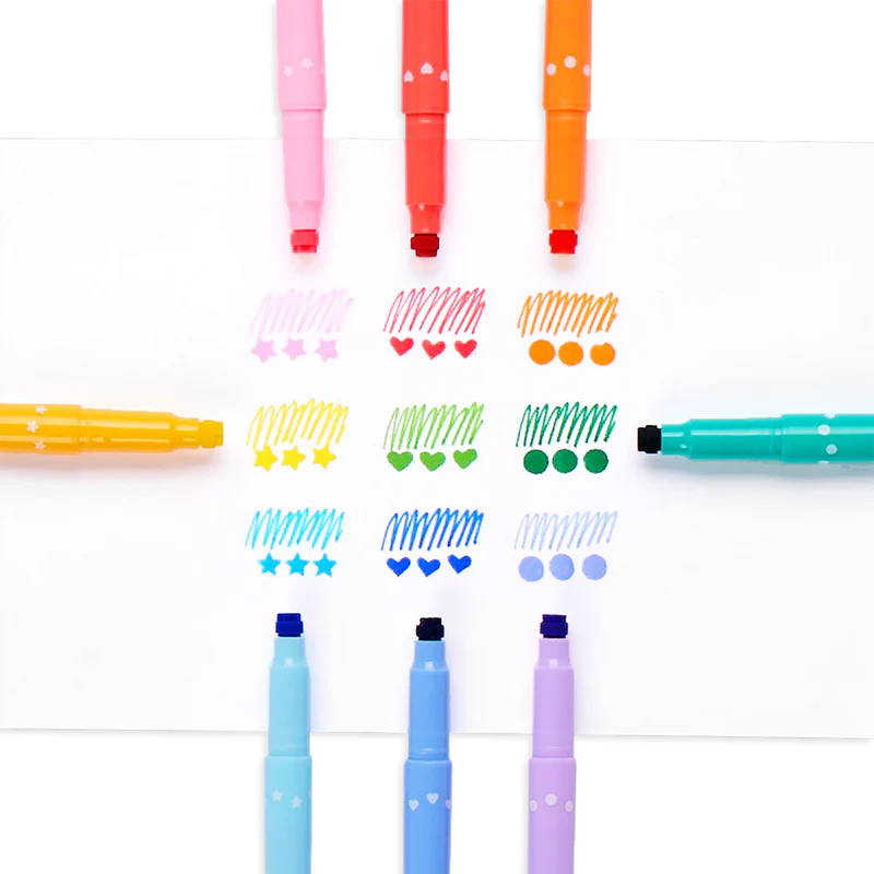 Ooly Confetti Stamp Double Ended Markers - Set of 9