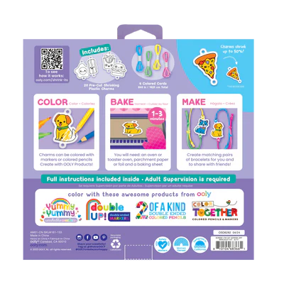 • Kit includes 20 pre-cut shrink plastic charms and 4 colored cords in blue, green, yellow and red