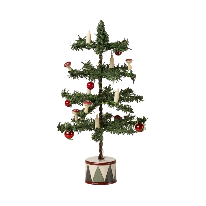 This small Christmas tree fits perfectly into the Gingerbread House. Small decorations are added on the branches and if you add a battery the LED bulps will lighten up the tree. Battery is not included. Need 1 pcs coin cell battery (CR2032).