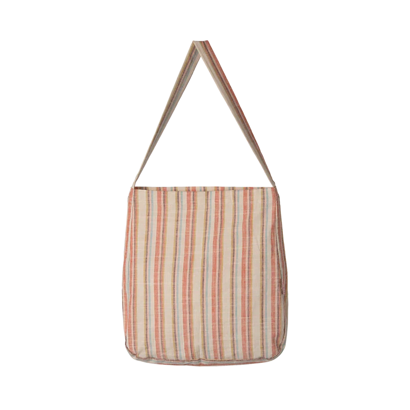 A beautiful multi striped tote bag made of soft cotton/linen fabric. Notice the beautiful Maileg logo on the bag as every Maileg products has an added detail. A perfect small bag to bring along.