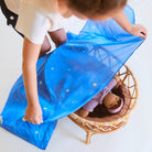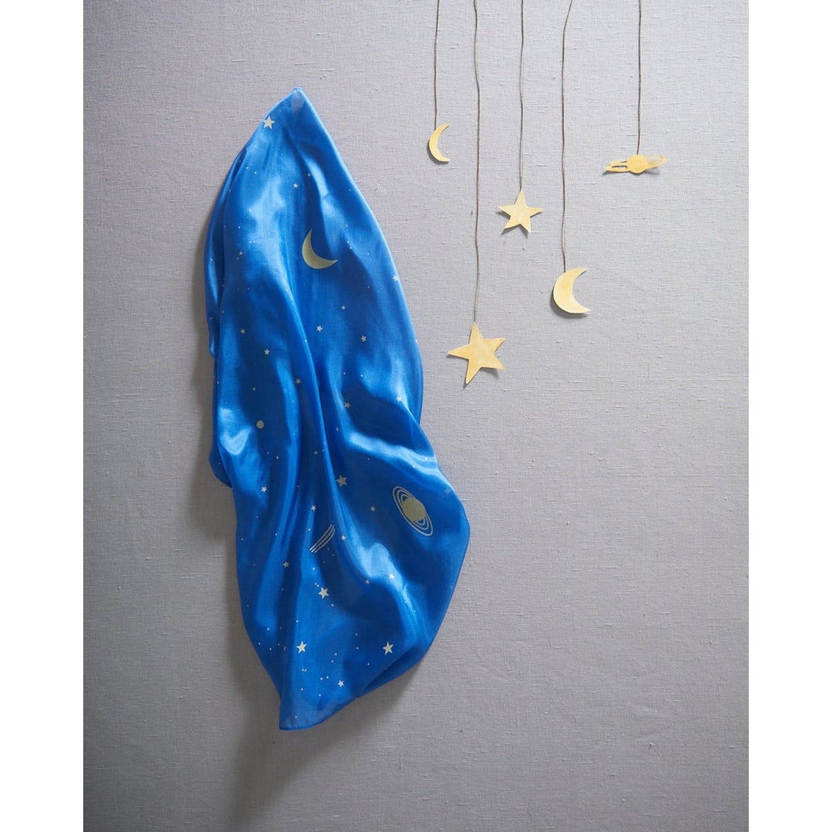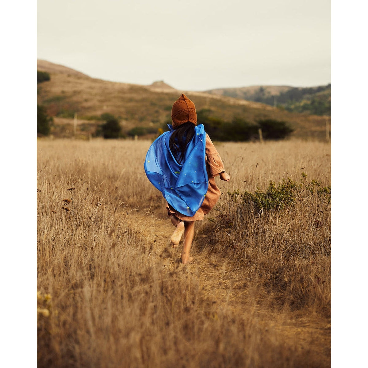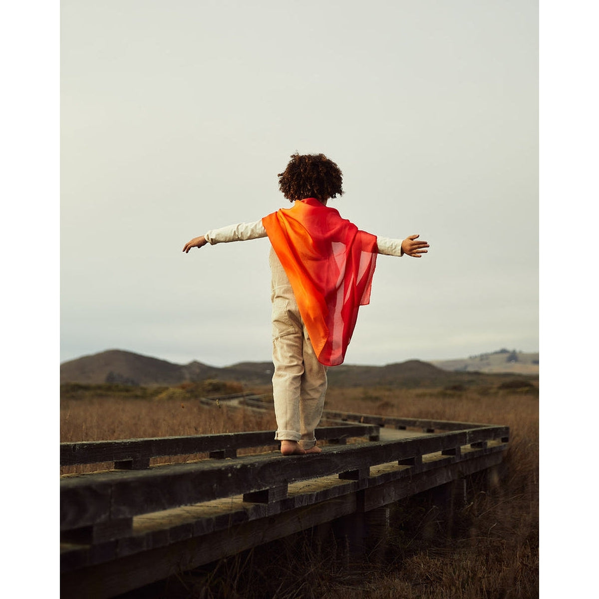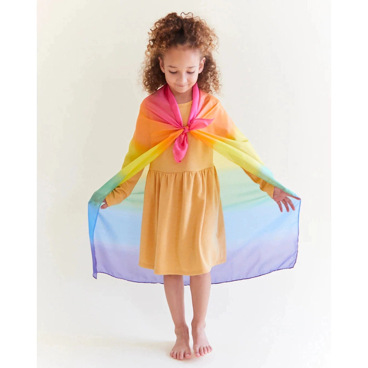 Sarah's Silks playsilks are 35" squares that are dyed with non-toxic, eco-friendly dyes. One of the most versatile toys, one moment playsilks are a canopy to sit under, the next they are boiling lava to jump over. One can be grass to feed your horse, and another might be a doll carrier, a cape, or soup in a pot! The play options with playsilks are as limitless as your imagination. The Enchanted Playsilks are made with beautiful blended colours, such as "blossom" in pink tones and "sea" in blue tones.