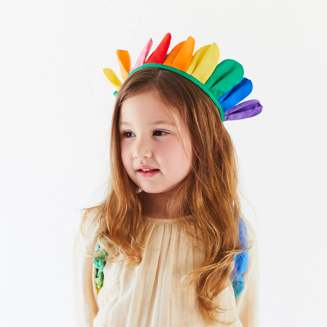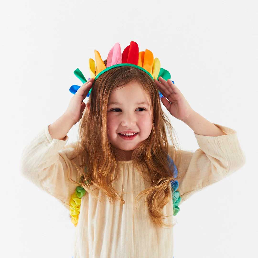Add a touch of magic to dress-up playtime with our Rainbow Flower Petal Crown. Made from 100% natural mulberry silk, with a soft elastic band to ensure a comfortable fit. Perfect for fairy-themed playdates and imaginative adventures.