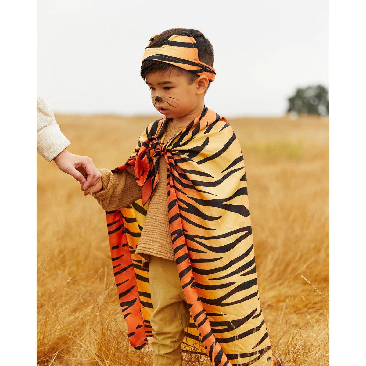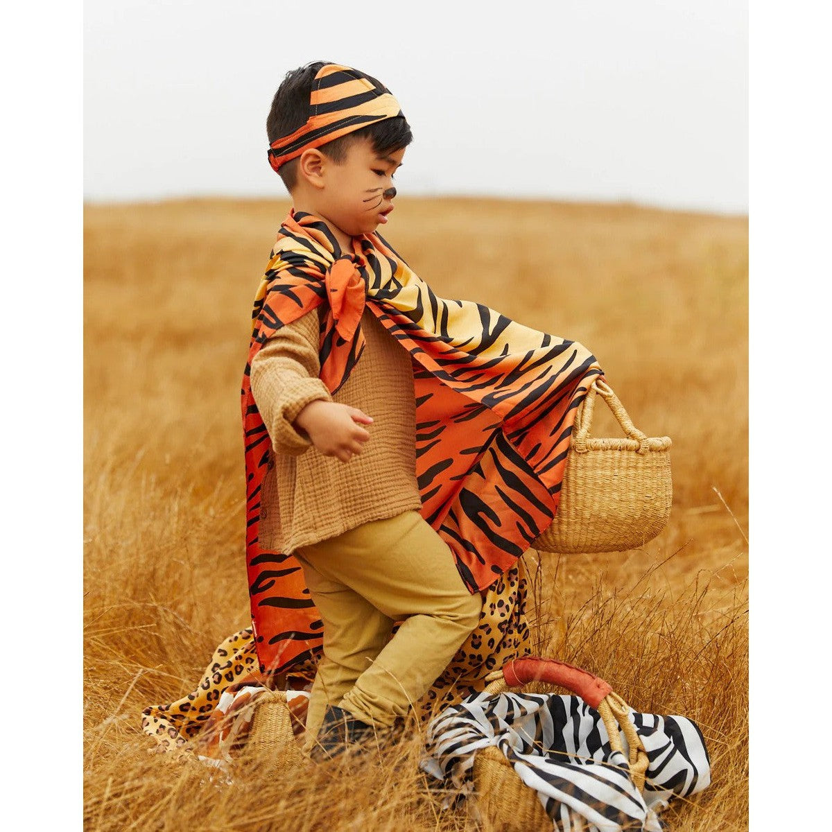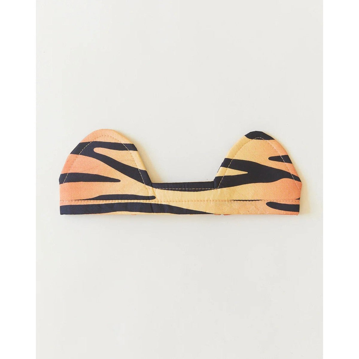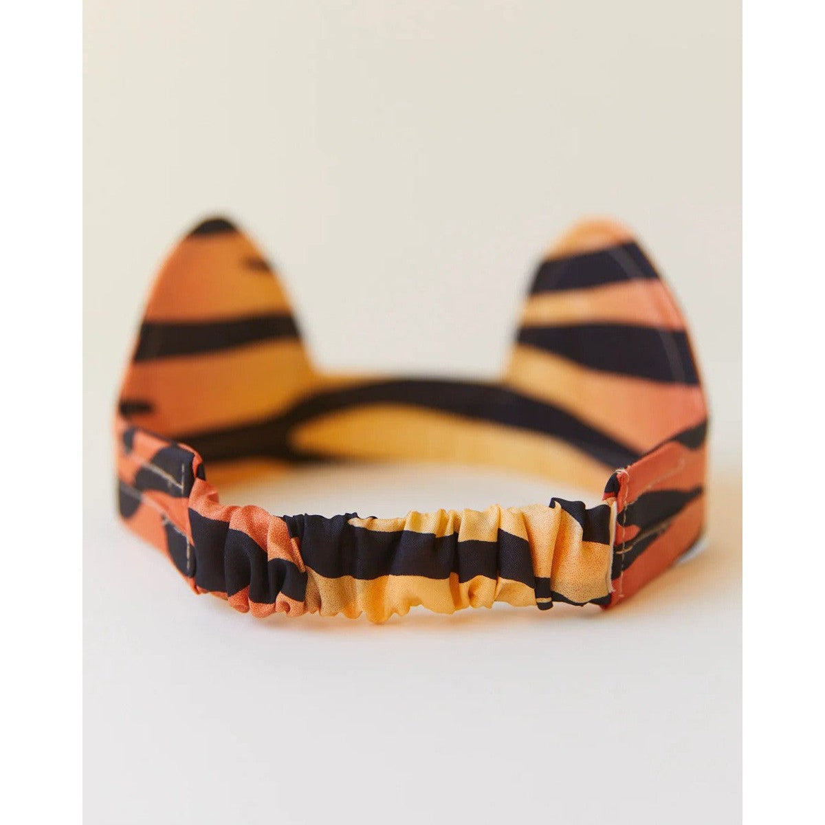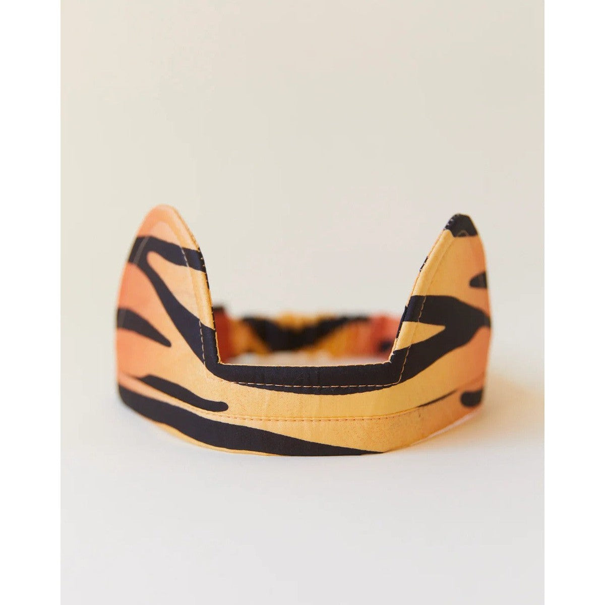 A beautiful headpiece for any aspiring tiger. A gorgeous pattern of black stripes on a golden orange background is printed on heavyweight, 100% pure mulberry silk.