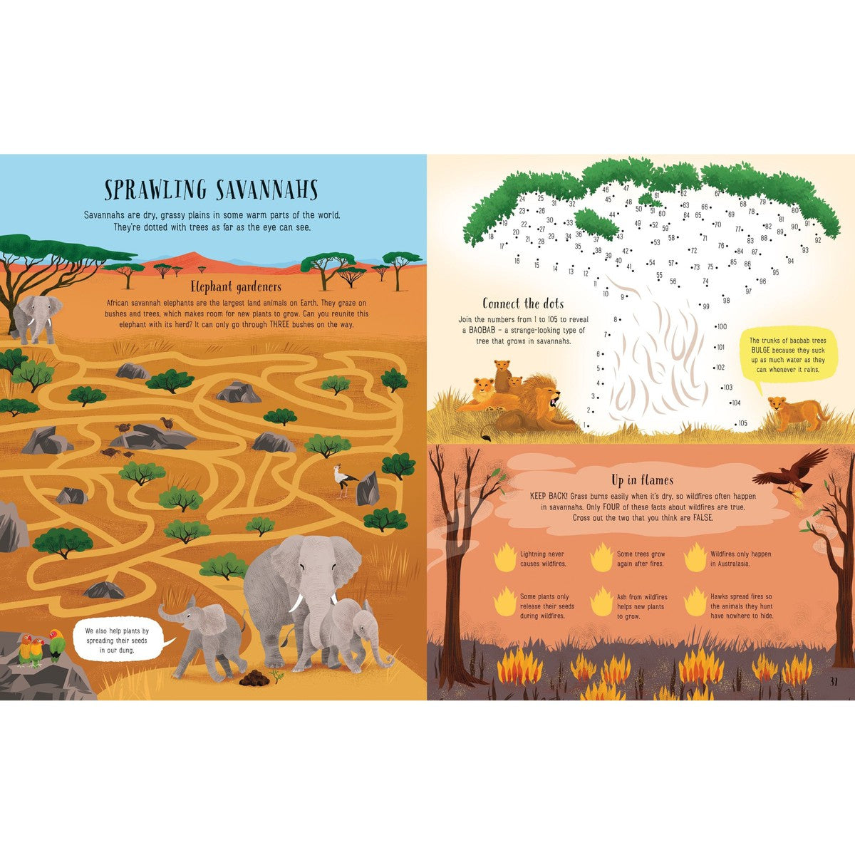 The puzzles and activities in this book will take your child to the furthest corners of the Earth. They'll spot wildlife in the Amazon Rainforest and find a wonderful array of corals in the Great Barrier Reef to colour in. Then they'll discover the highest mountains on all the world's continents and identify volcanoes around the Pacific Ocean in the Ring of Fire. And when they come to reunite a herd of elephants on the African savanna, they'll learn why these amazing creatures are rather like gardeners.