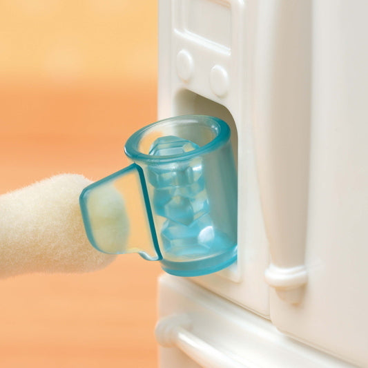 Kickstart imaginative play with the Starter Furniture Set from Calico Critters. This collection of furniture and accessories has a little bit of everything, from a fridge, to a toilet, to apple pie. With incredible tiny details your kiddos will love, you can cut the baguette with the knife, or grab ice from the dispenser using a cup — you can even pull the toilet handle to "flush" the toilet! Chocolate Rabbit Mother figure included.