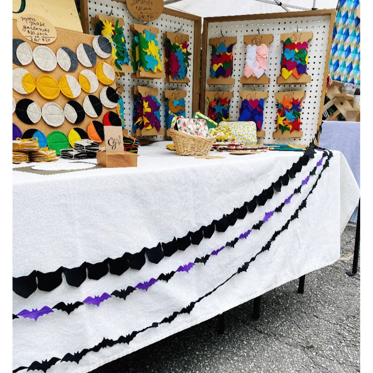 Hand cut and sewn by local Vancouver artist Emerald and Ginger. Each garland measures 110 inches (just over 9 feet) in length and has wool ties on each end for hanging ease. Made with love for you or your little ones!