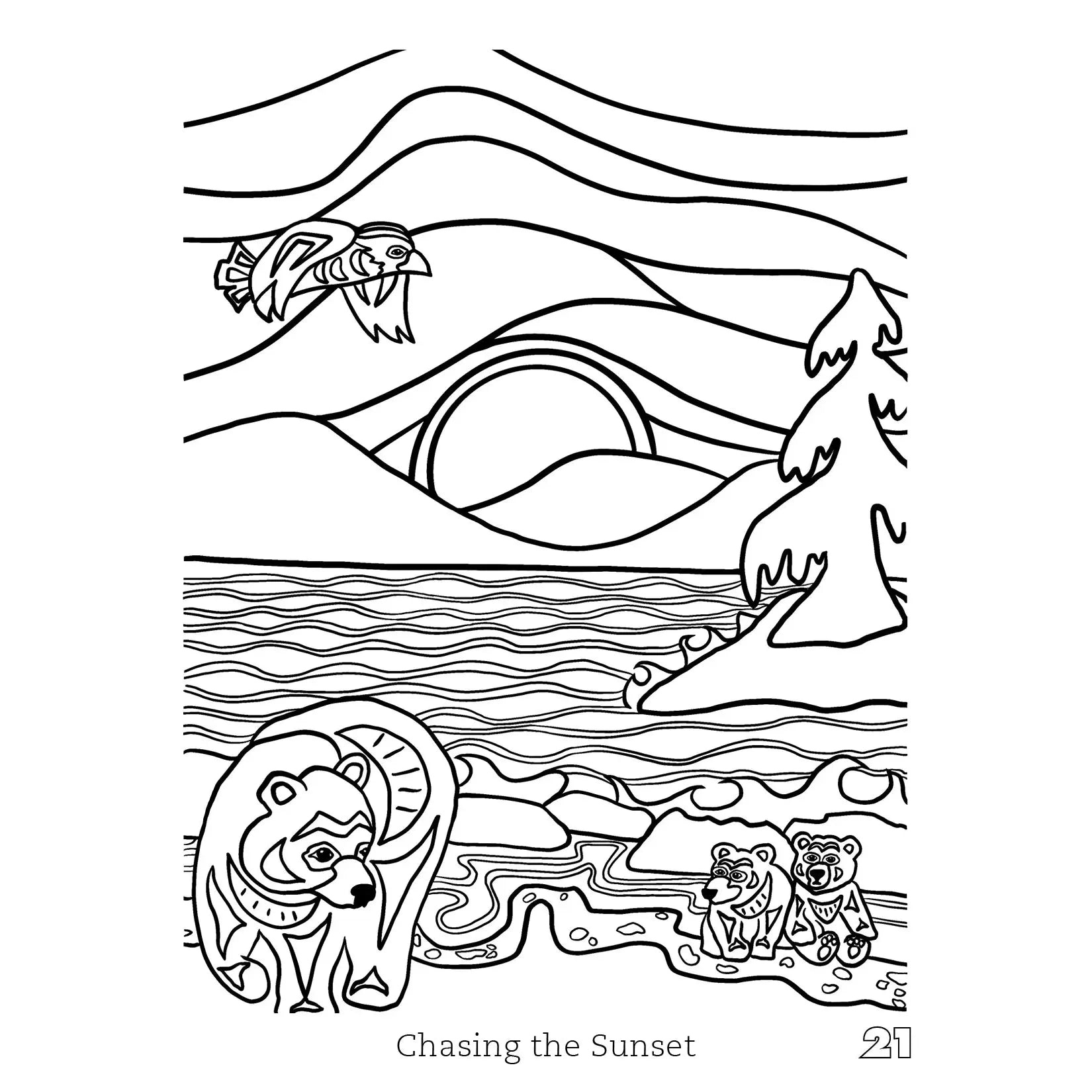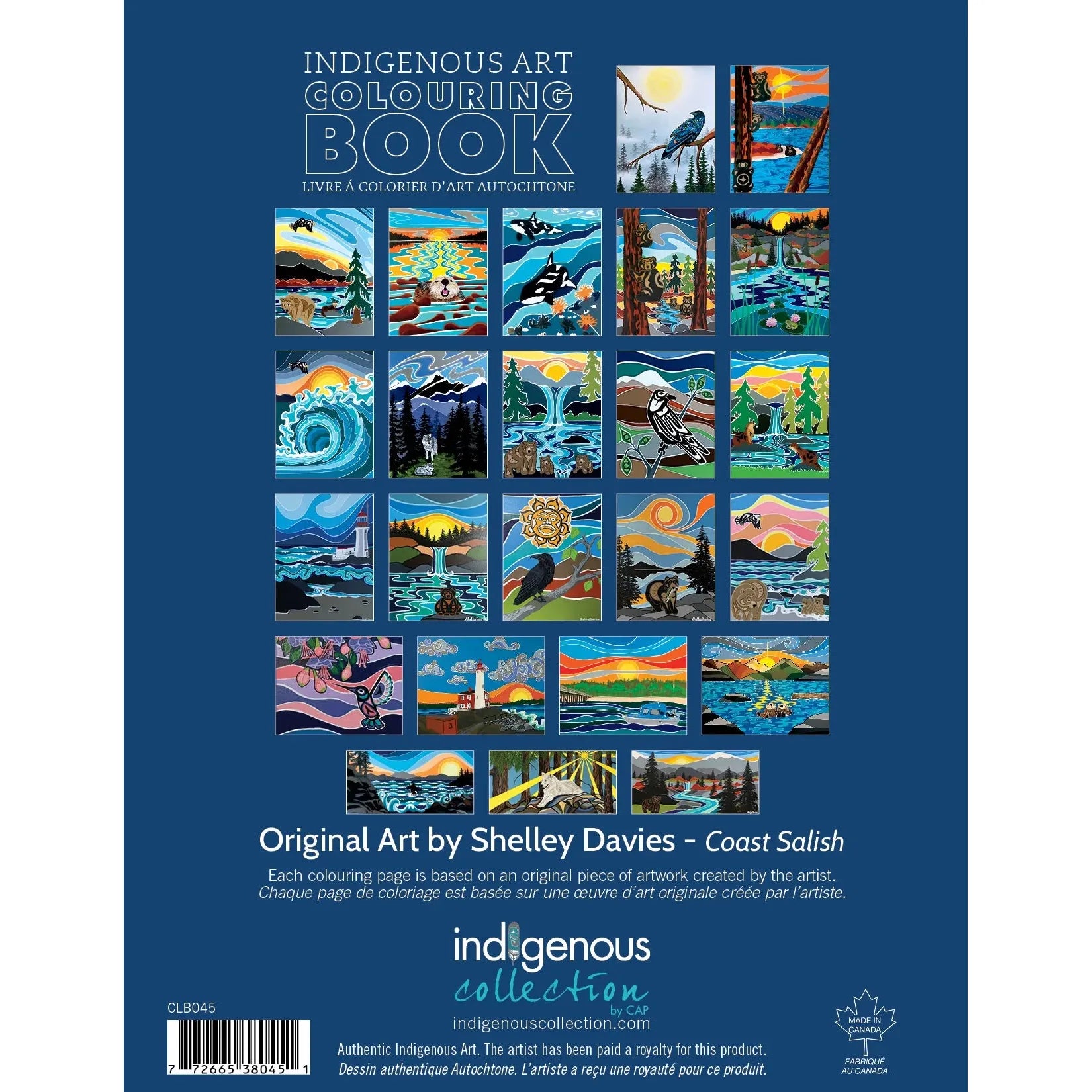 Indigenous art colouring book featuring artwork by artist Shelley Davies Her cultural background is Coast Salish. The artist is paid a royalty on every sale.