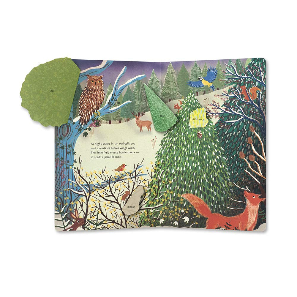 One white and snowy night, a little Christmas tree stands alone in the forest. Everything is white and lifeless. As the night goes on, there are signs of life: an orange fox, a red-breasted robin, a cloud of fireflies. By the end of the book, the little Christmas tree is transformed by nature. Another glorious lift-the-flap exploration of nature in the same series as Little Tree and Little Honeybee.