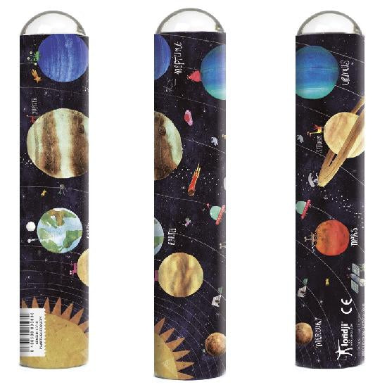 Londji's Planets Kaleidoscope. A different kaleidoscope that reflects outside images in kaleidoscopic forms. Illustrations by Carmen Saldaña.