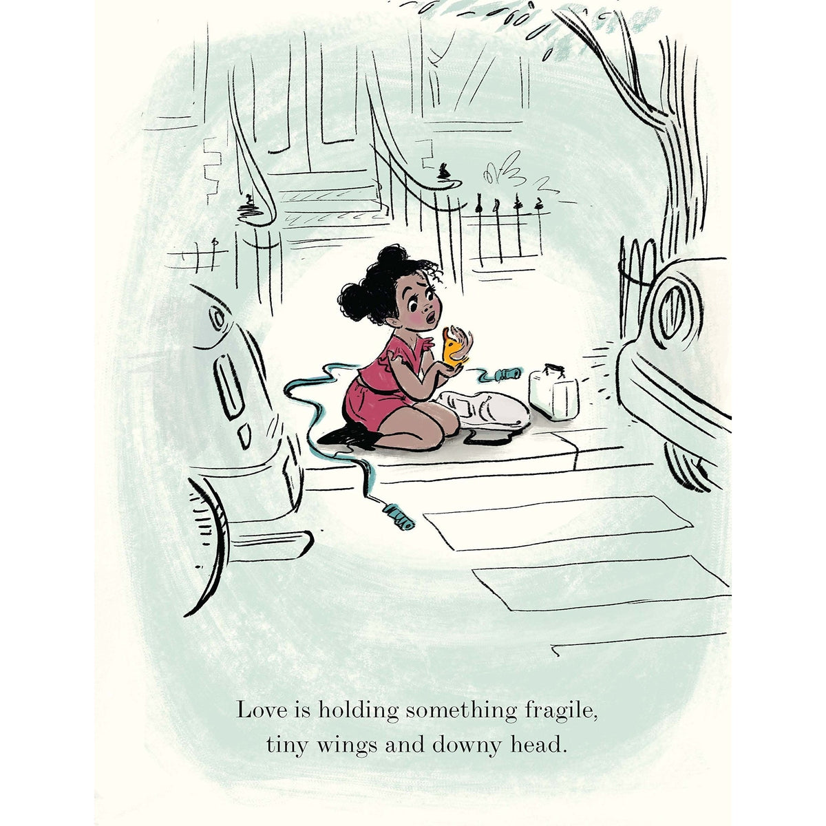 This beautifully illustrated book tells the heartwarming story of a little girl and a duckling, who both grow to understand what it means to care for each other as they learn that love is as much about letting go as it is about holding on. A little girl finds a duckling who has wandered away from the park onto the city streets, and takes it home to care for it. The baby duck requires constant attention-early morning feedings, bathing, and tidying-until the time comes to say goodbye. When her pet has grown too big for the bath, the girl takes the full-grown duck back to the pond. Afterward, she misses it and wonders if it remembers her. One day, the duck comes back-with six ducklings of her own.