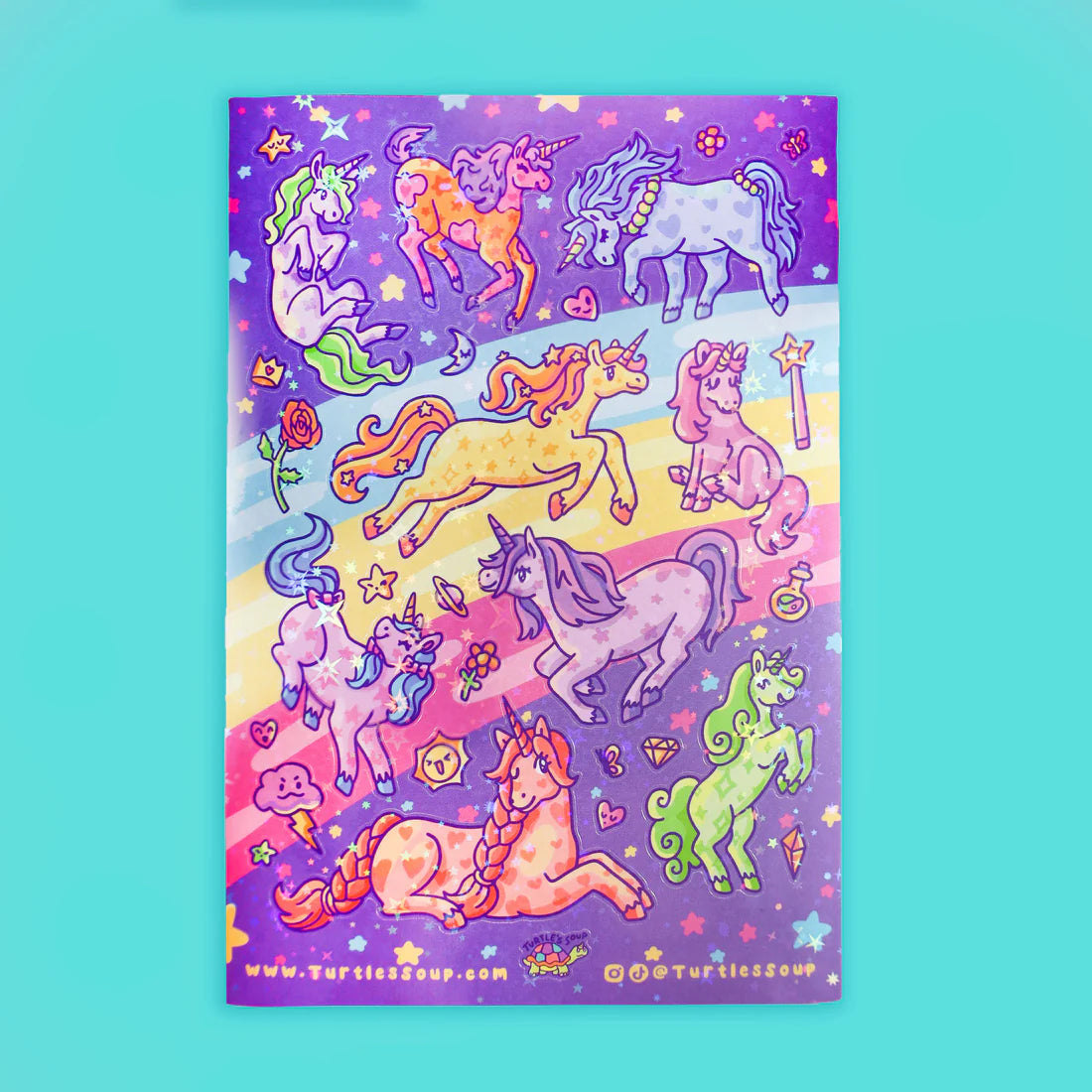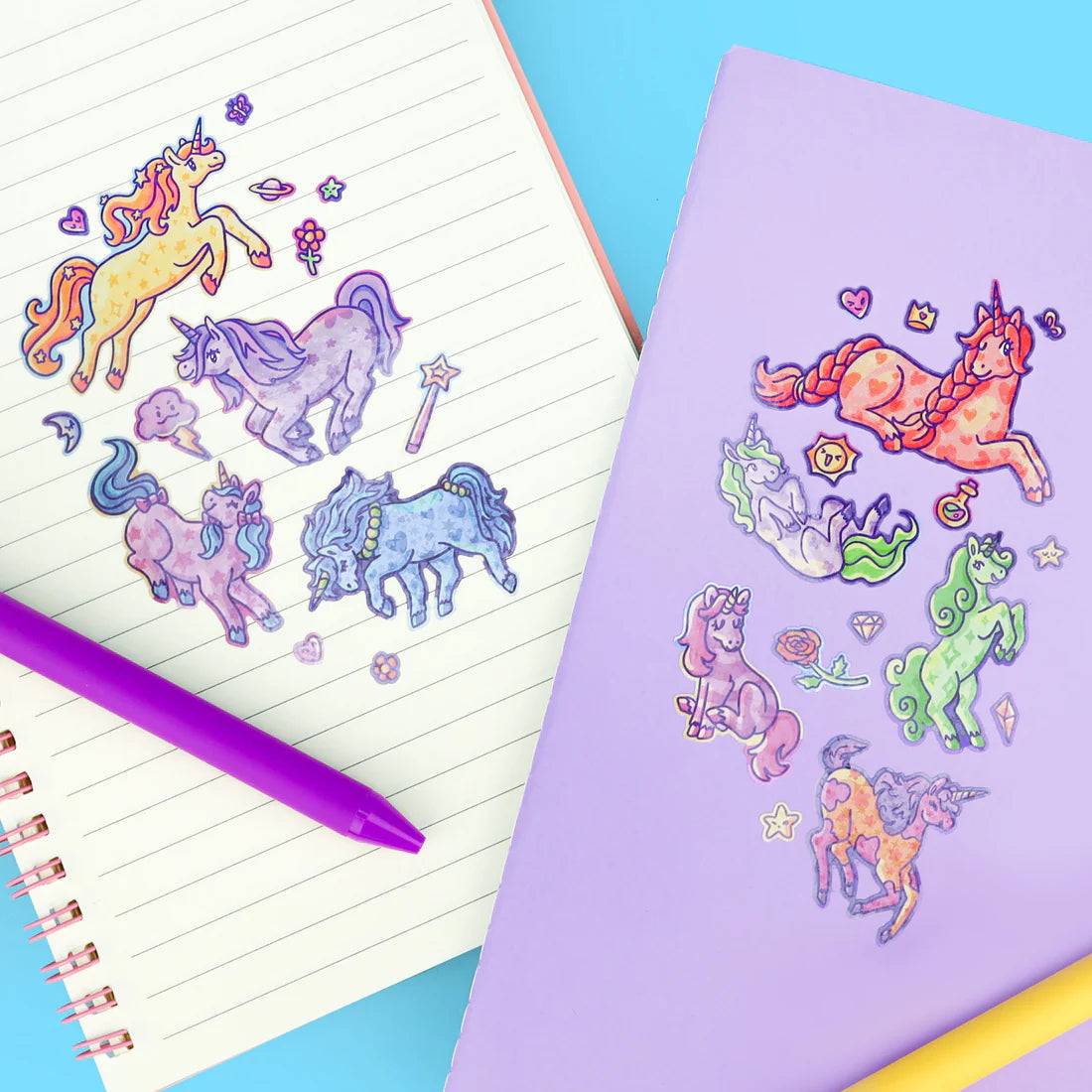 A redesign of an old favorite! These magical unicorns are here to bring a bit of sparkle into your life! Instantly enchant any object with the magic and luck of the unicorn by putting one of these stickers on it! The vibrant colors are sure to brighten up your home!