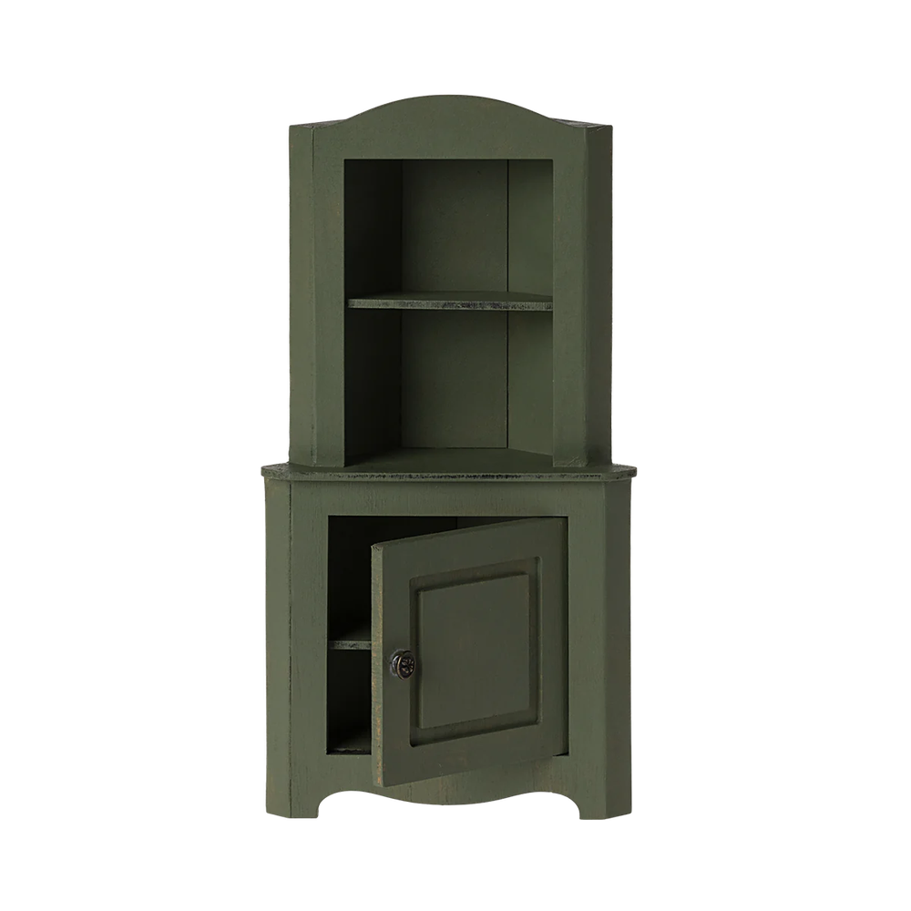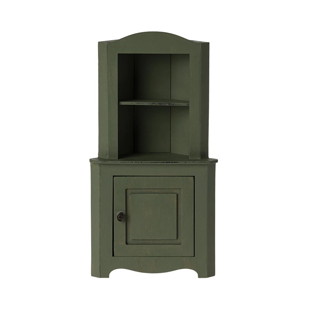 The perfect closet to store a lot of stuff. It fits perfectly into a corner so it will look stylish in the home decoration. It has a vintage finish - varriation in the paint may occur. This closet fits perfectly into the House of miniature.