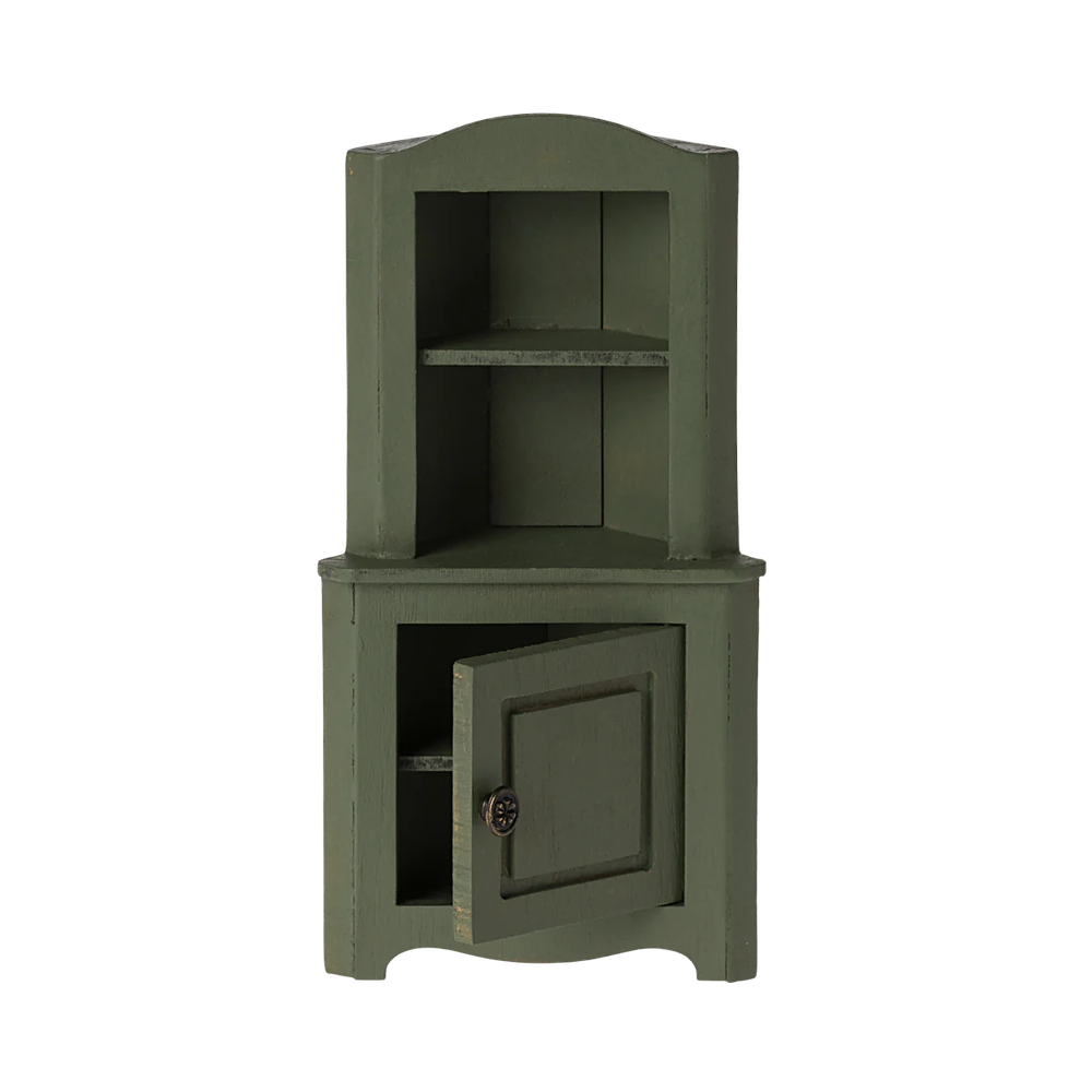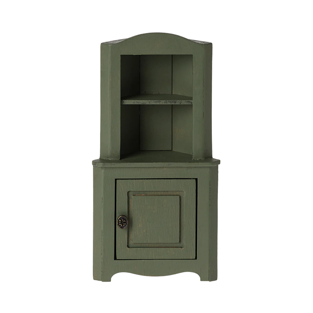 The perfect closet to store a lot of stuff. It fits perfectly into a corner so it will look stylish in the home decoration. It has a vintage finish - variation in the paint may occur. This closet fits perfectly into the mouse hole farm house.