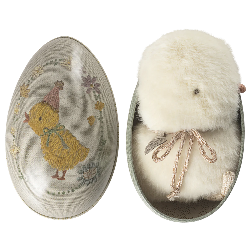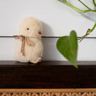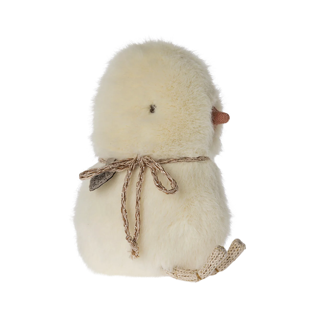 A small plush toy which is perfect for a tiny hand. The mini sized chicken has the sweetest look and a very soft hand feel. The small legs are made of knitted string with golden effect.