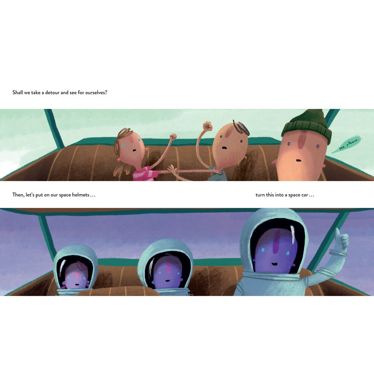 A father takes his two children on a thrilling out-of-this-world adventure into space and invites them to look back at Earth and the conflicts that have taken place since the beginning of time. This becomes a brief history of the world and a whistle-stop guide to the universe, all rolled into one – and told with Oliver Jeffers's inimitable perspective, wit and exquisite artwork.