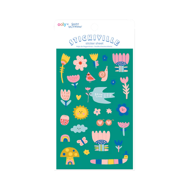 The Stickiville collaboration with illustrator and toy creator, Suzy Ultman has cultivated a garden of love! Sweet and inspiring, this single sticker sheet of vinyl stickers features pops of bright colors, and playful renditions of our favorite garden goodies, like flowers, mushrooms, beetles, worms, and more. Brighten up your backpack, lunch box or notebook. These garden stickers also make a great addition to birthday party favors. They’re sure to make your little one’s happiness bloom!