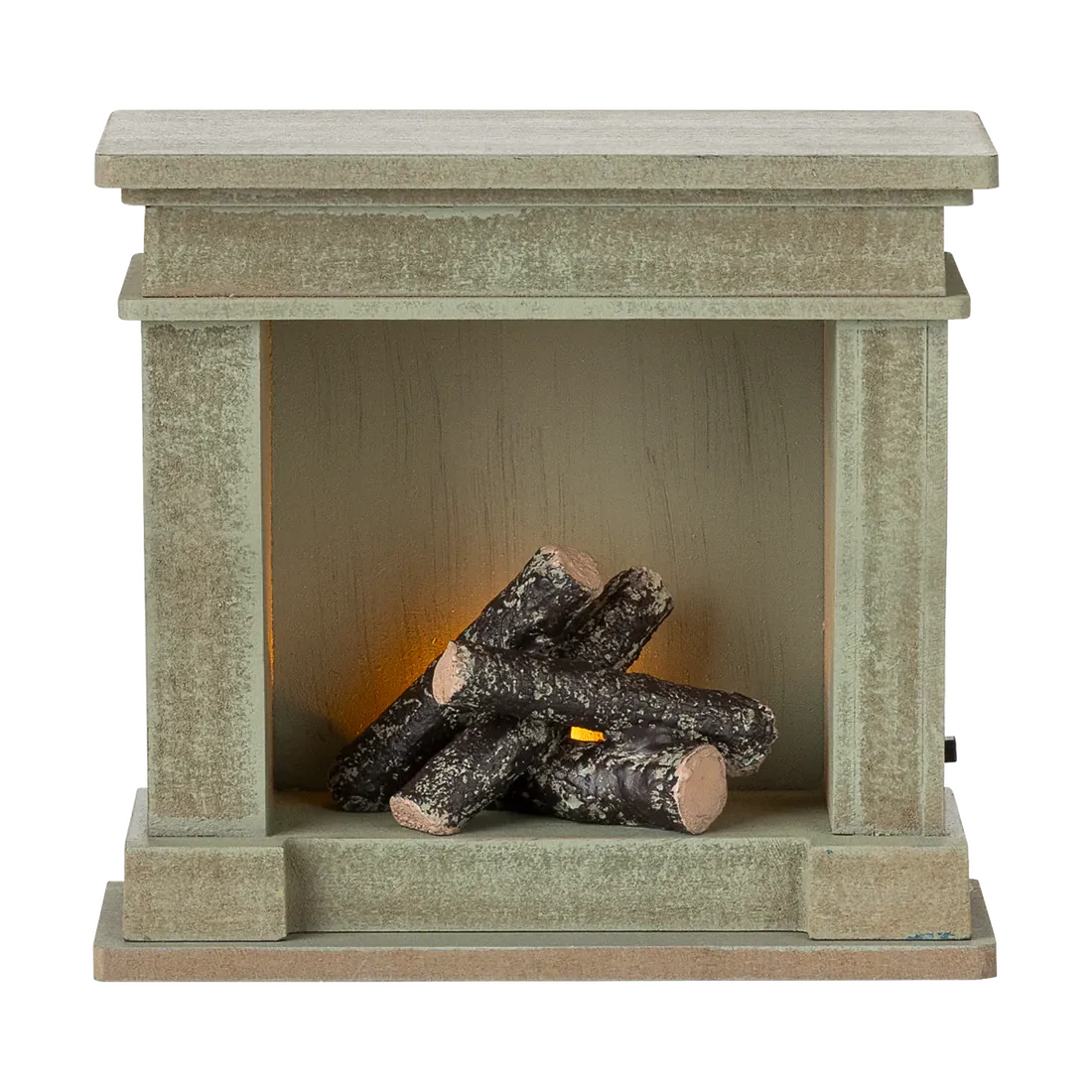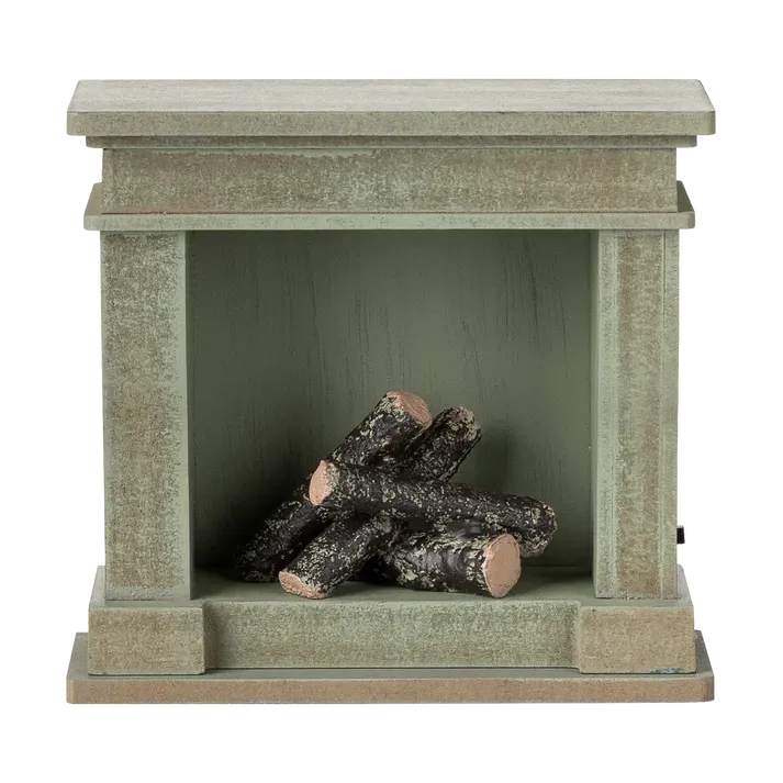 Use this wooden fireplace to warm your miniature home. It has an authentic look and a vintage finish. Remember to turn it off when your friends go to bed. The product comes without a battery. You can add a coin cell battery (CR2032)