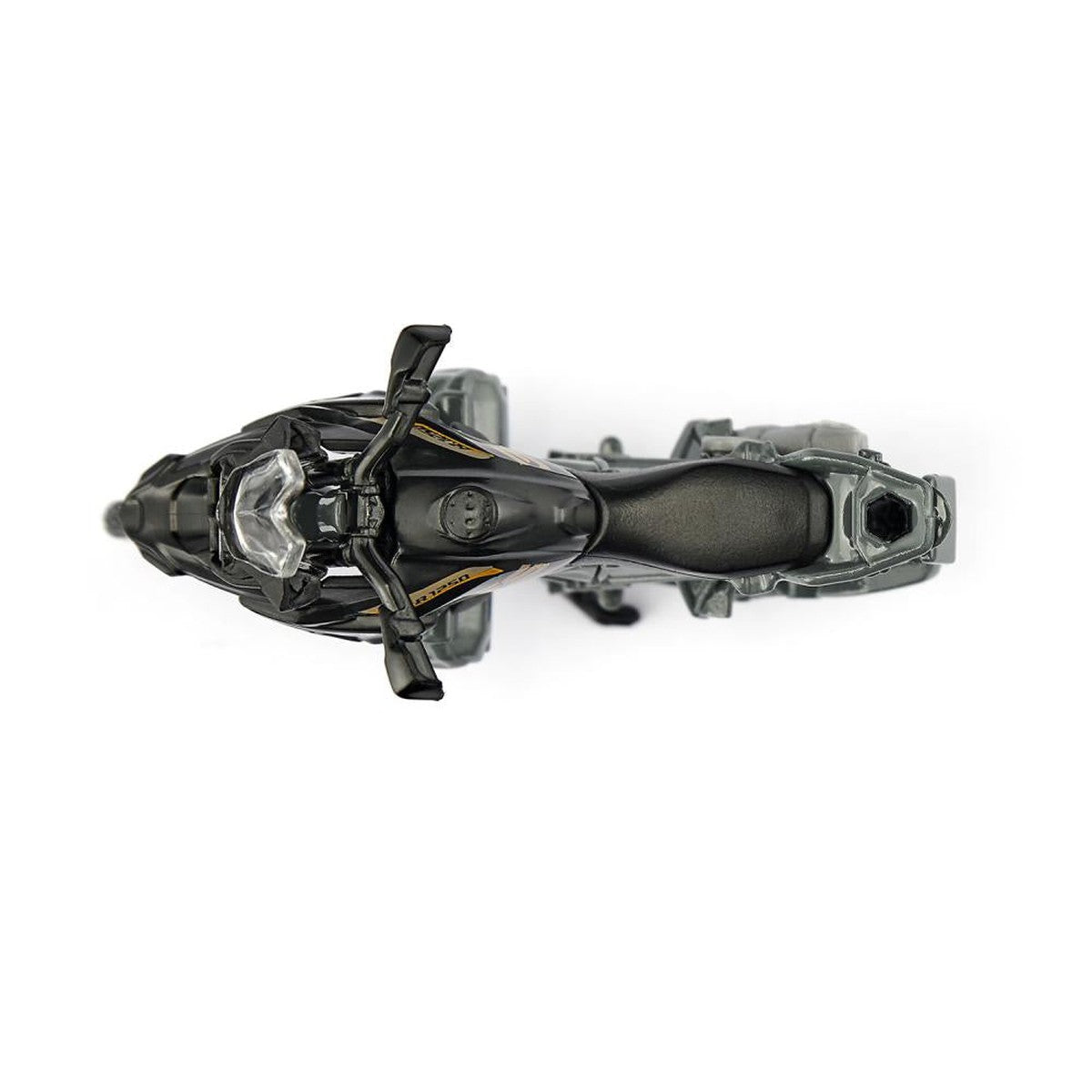 For many years the BMW R1250 GS LCI has been Germany’s best-selling motorbike, and over the course of four decades it has become a real icon! Whether on asphalt or gravel surfaces, briskly taking curves, or relaxed cruising – the stylish machine is what you want for every adventure. The frame and tank are made of metal, handlebar and stand are movable, and the wheels are equipped with real rubber tires. With its realistic features, it’s perfect for both creating your own play scenarios, as well as displaying in your room.