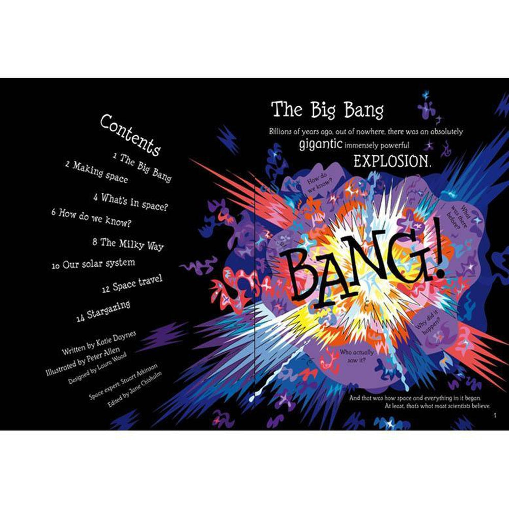 This Usborne flap book is of astronomical proportions, packed with facts and information about the stars, planets and the universe. Fabulous double-page topics show our solar system, the Milky Way, how scientists think the universe was created and the latest space travel technology. Over 50 flaps reveal fascinating facts about the universe and there's a little book of star maps tucked in a pocket at the back of the book. Includes internet links to websites with the latest space information, games and photos.