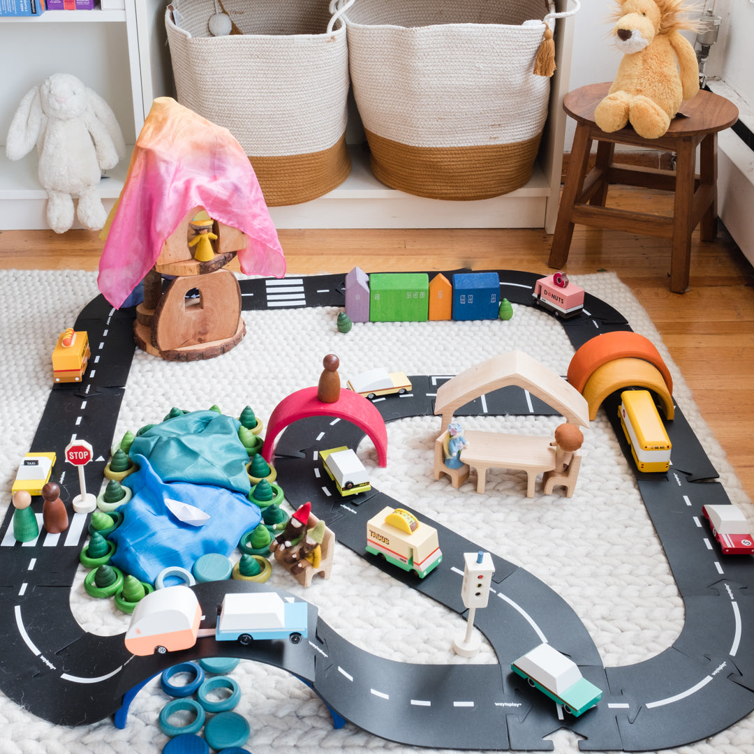A Dutch Design original; become king of the road and carve your own paths with opened ended sets of roads! All resources are sourced from Germany, and the tracks are made from high grade, child safe, durable, hygienic rubber. Because they're flexible, any surface can become your own personal highway. There's no map for a reason - the husband/wife team behind waytoplay deeply believe their toys should have no fixed result - your child is encouraged to be imaginative and puts them in the drivers seat. Any way is your waytoplay!