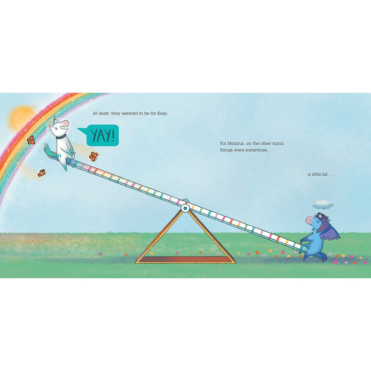 Nimbus has so much fun being Kelp’s friend! Their days are filled with games, sunshine, and a whole lot of rainbows. Only, Nimbus can’t stay sunny all the time; in fact, some days she’s downright cloudy.