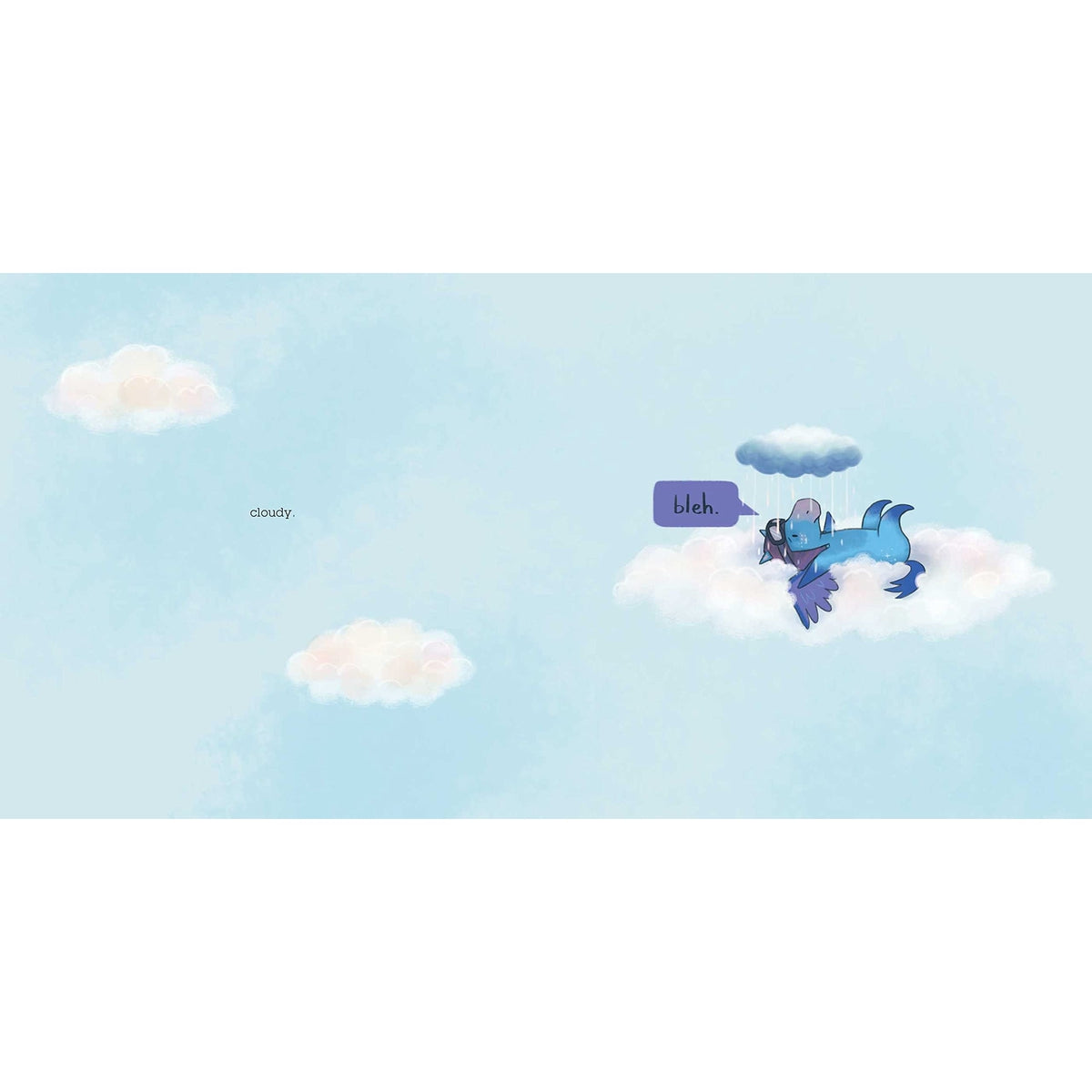 And when Nimbus’s cloud turns into a storm, there’s no way to keep it from others anymore. But maybe getting to know her cloud could make it a little less scary…and maybe friends like Kelp are there to share the weather together.