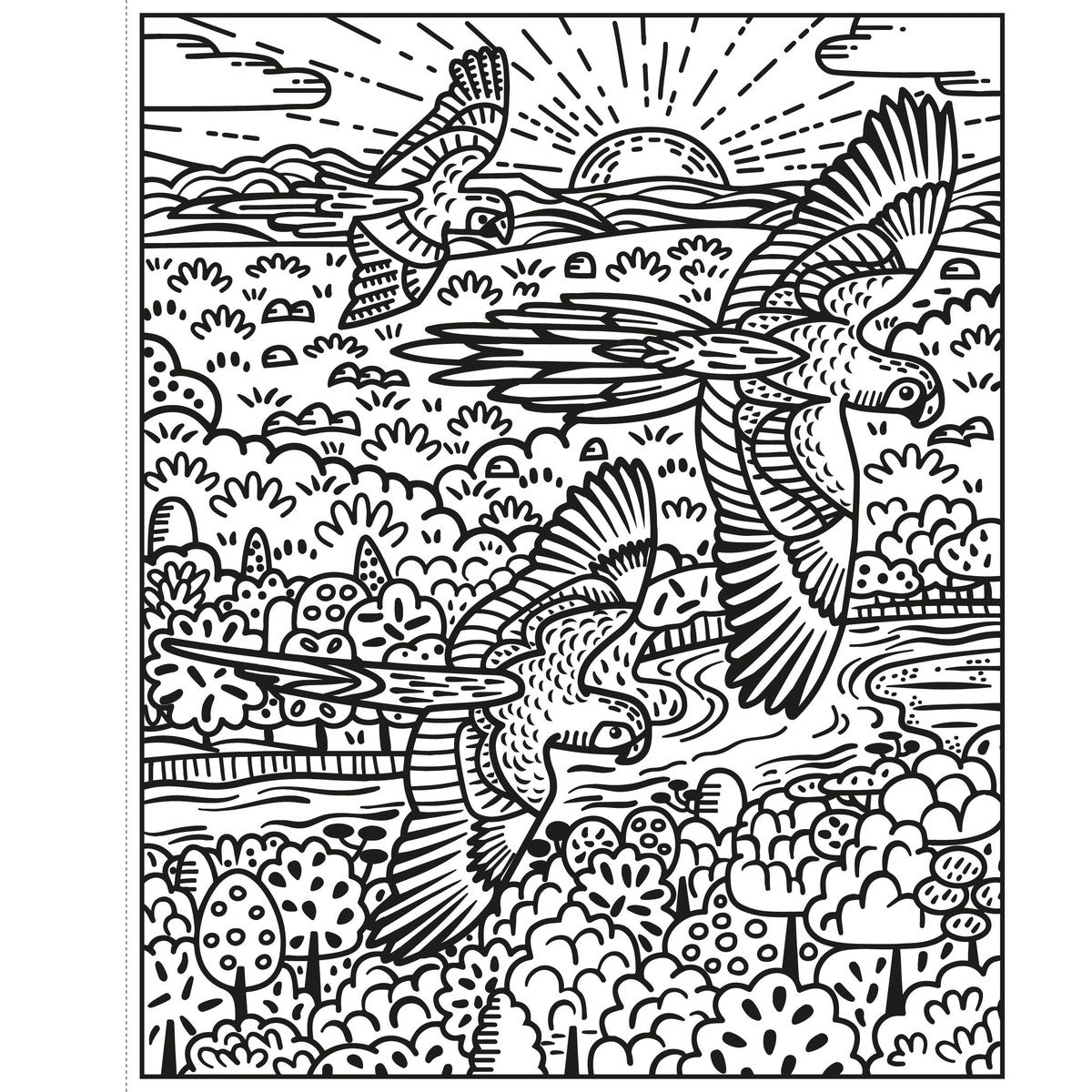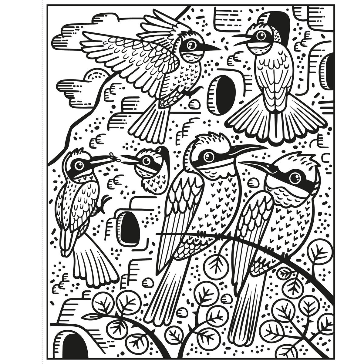 Filled with detailed scenes showing an array of brilliant birds, from flamingos and hummingbirds to kingfishers and macaws. Simply brush water over the black and white designs to reveal an array of vivid colours.