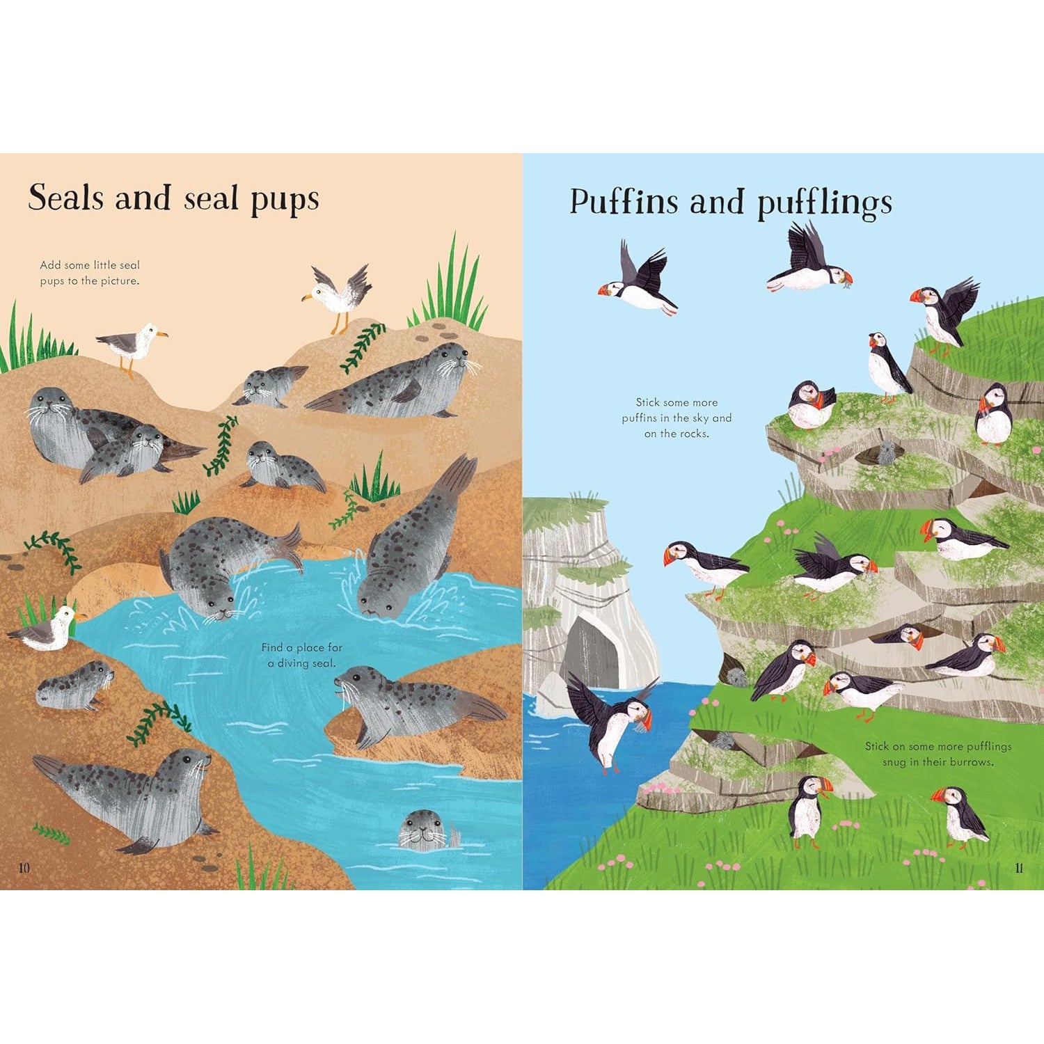 Visit a sandy beach, dive into rock pools and explore the fascinating seashore in this delightful sticker book. Use the 240 stickers of interesting birds, plants, sea creatures, pebbles and shells to bring the beautifully illustrated scenes to life.