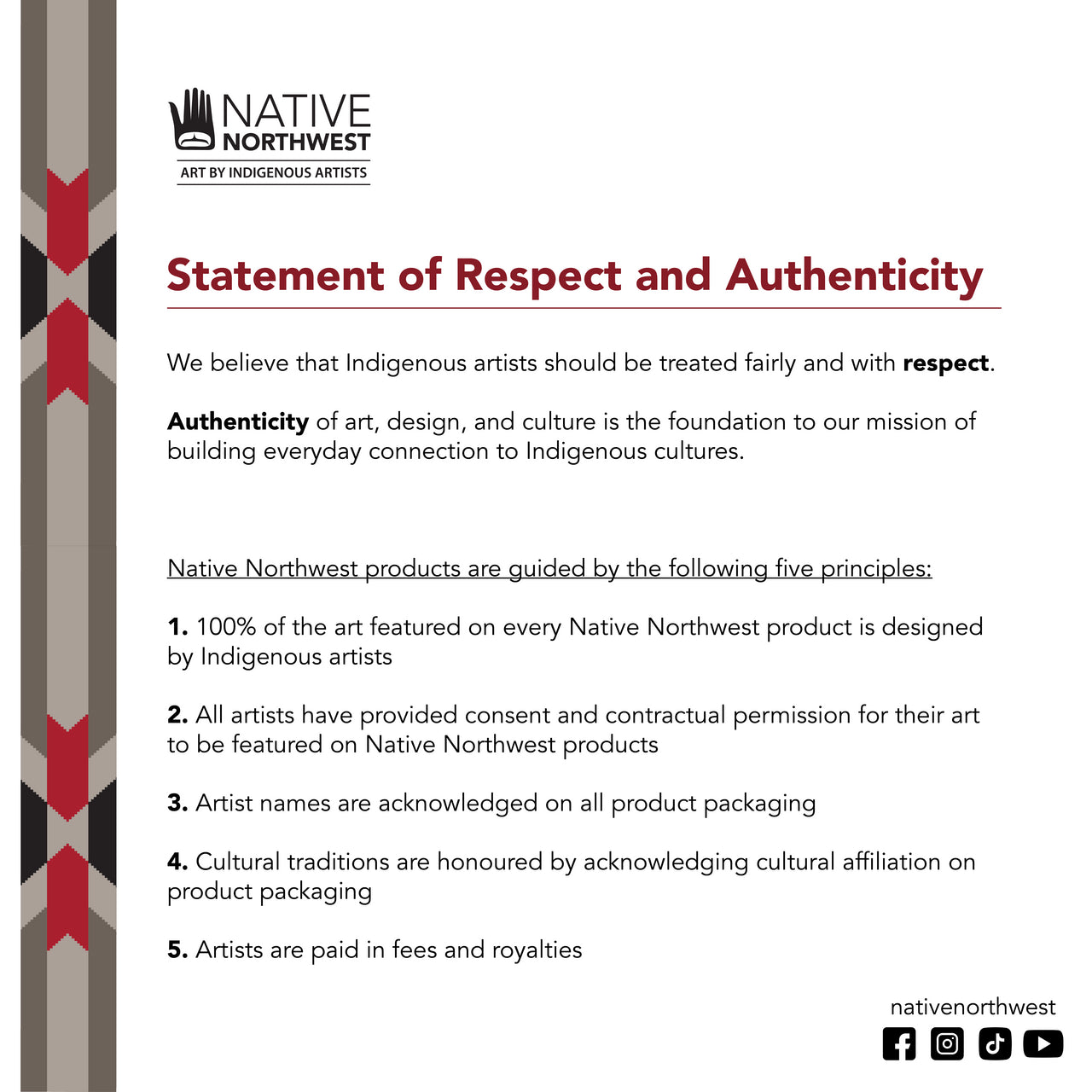 Great for all ages, Native Northwest Temporary Tattoos are a great, non-permanent, way to unleash your creativity and stand out from the crowd. These 2" x 2" temporary tattoos are available in many great designs, all by Indigenous artists. With so many to choose from, you're sure to find the design that speaks to you. Made with vegetable-based dyes.