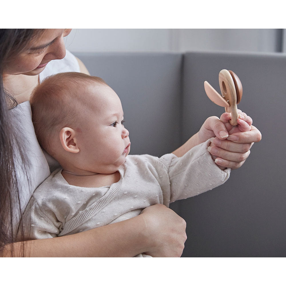 Engage your little baby's senses with the Shake n Clap rattle. Great for parent-guided play in early months, this rattle toy is easy to grab and hold and safe to suck and chew on. Lovely for tactile exploration, eye tracking, and hearing engagement.