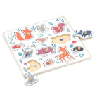 With wooden pegs adapted to the small hands of children, this 12-pieces peg puzzle decorated with great poetry by Sarah Betz is a great support for the development of fine motor skills of children. Thinking, observation, skill will be stimulated by the game: where does the fox stand? The mouse? The owl? Small colored dots placed in the puzzle base will help the little ones.