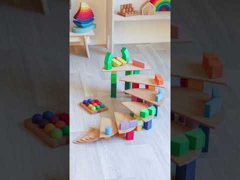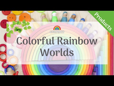 - shown paired with Grimm's large stacking rainbow, natural building blocks, and rainbow friends figures, and various other Grimm's sets, all sold separately