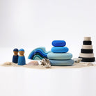 Build, stack, and find just the right balance with these carved wooden "pebbles" from beloved toy company Grimm's. Building with these rounded stone shapes is challenging and rewarding. Use your imagination and build these pebbles around a silk scarf to make a lake, or stack around the outside of a cave, perhaps make a throne for an ice fairy, or combine with other Grimm's building sets for even more building opportunities.