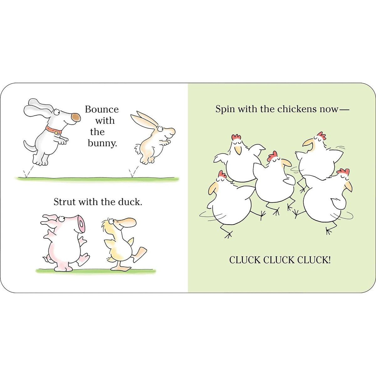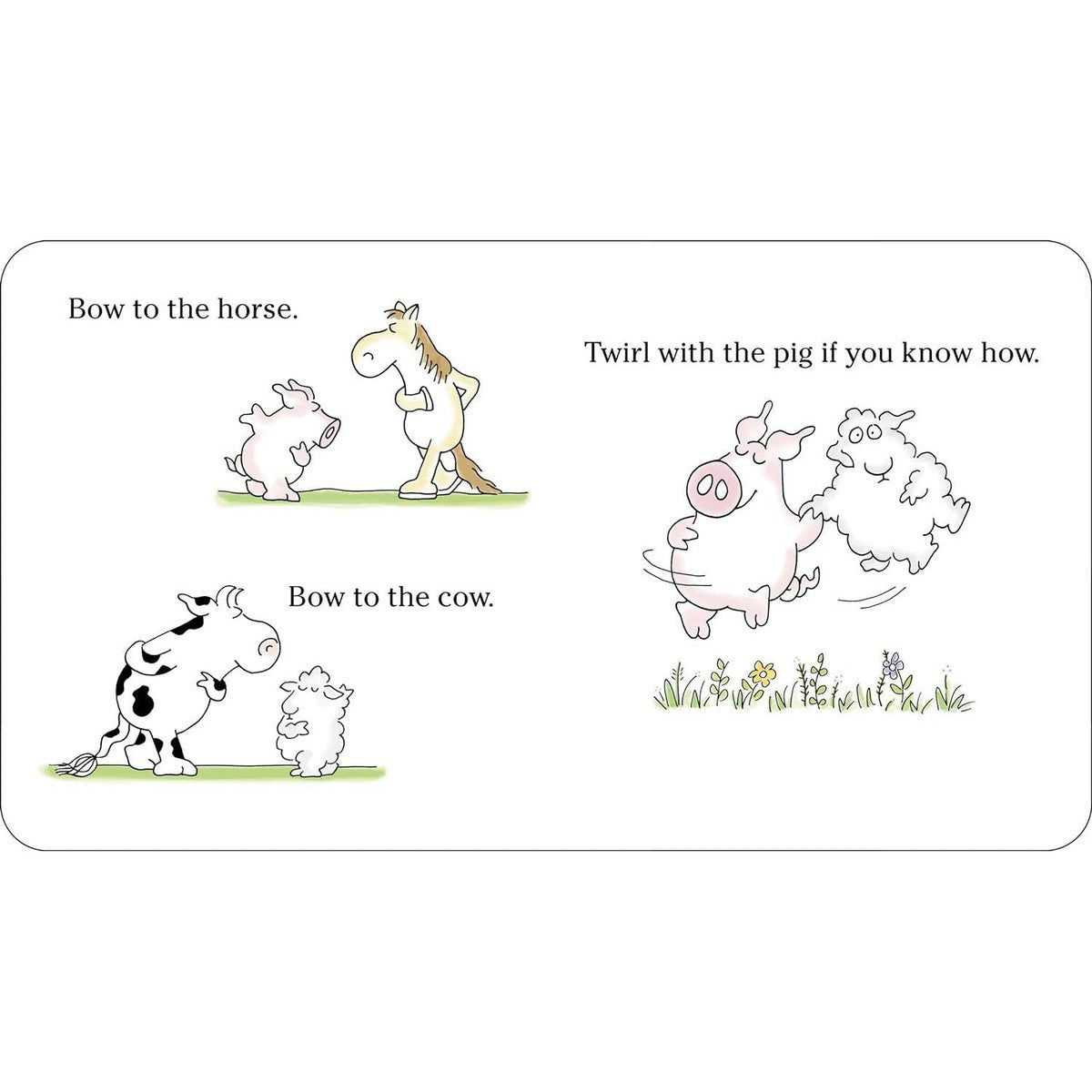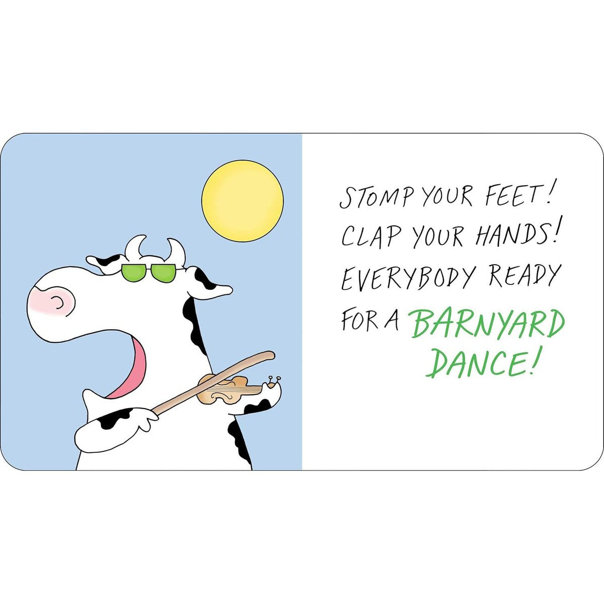 Join twirling pigs, fiddle-playing cows, and other unforgettable animals in their barnyard dance! With rhythmic rhyming text, this book is guaranteed to get kids and adults spinning, swinging, and prancing with the high-spirited cast of characters!