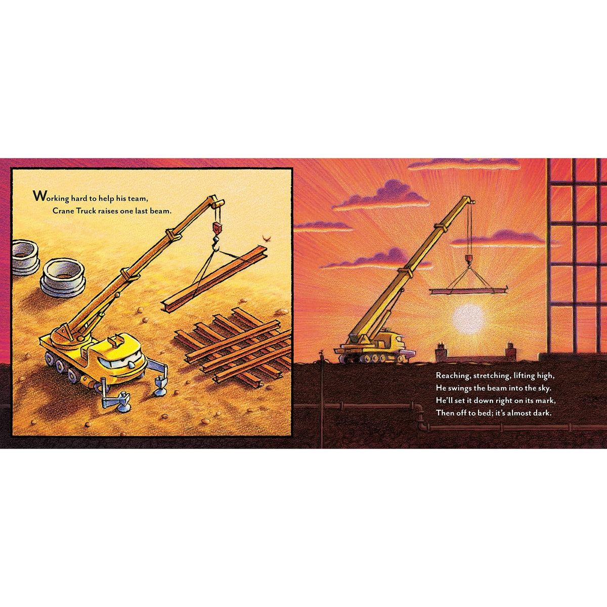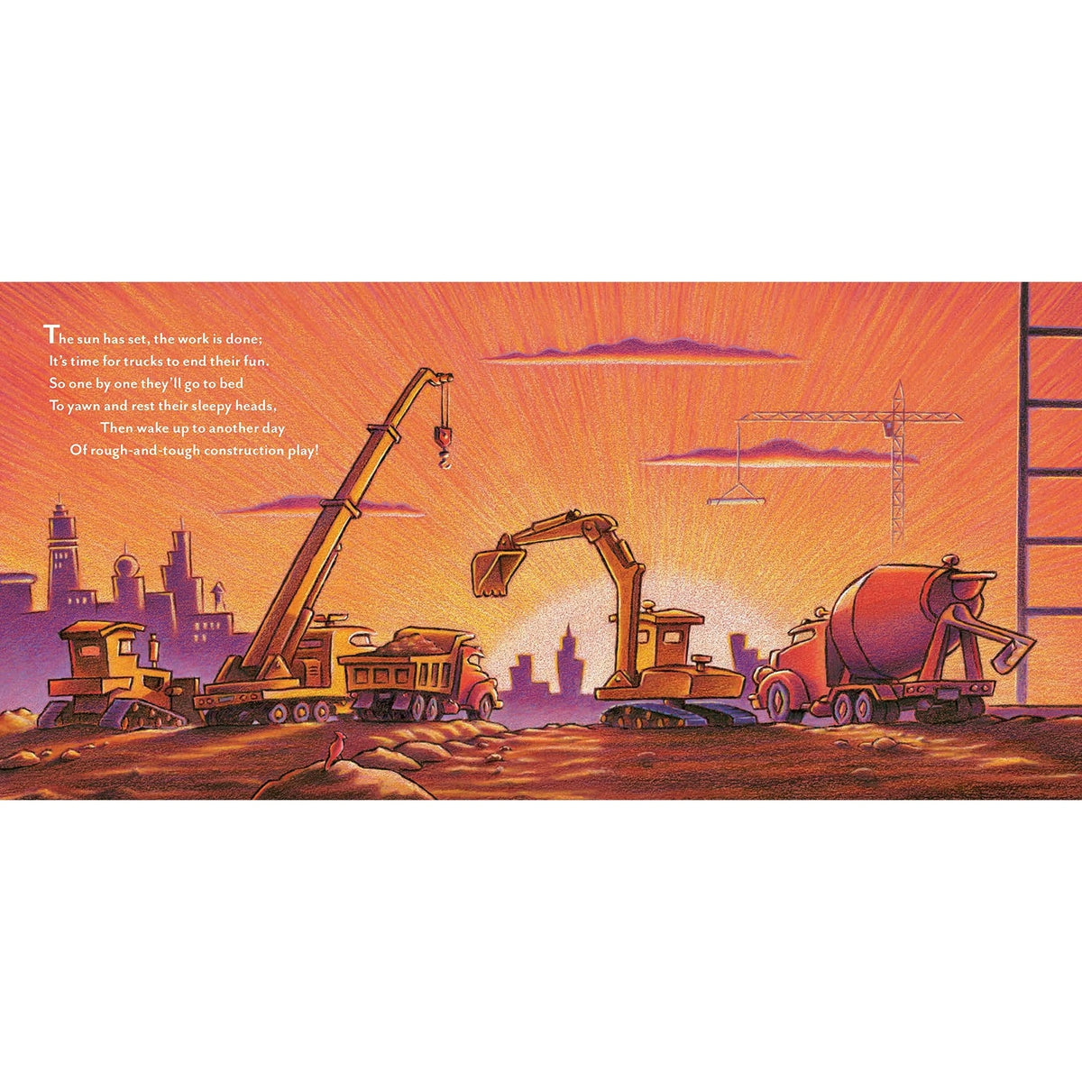 PERFECT READ-ALOUD: Author Sherri Duskey Rinker's sweet rhyming text and irresistible artwork by illustrator Tom Lichtenheld soothe little ones into a peaceful rest. This durable board book version is perfect for kids who can't get enough of trucks and construction stories, day or night!