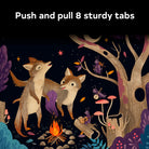 When you rest your head at night, nocturnal animals awake to dance and play! Push and pull the sturdy tabs to make foxes frolic and hedgehogs hustle in this sweet, interactive tale of nighttime fun. A charming and interactive bedtime read-aloud, young children will delight in moving the durable novelty elements, making the illustrations transform through their efforts.