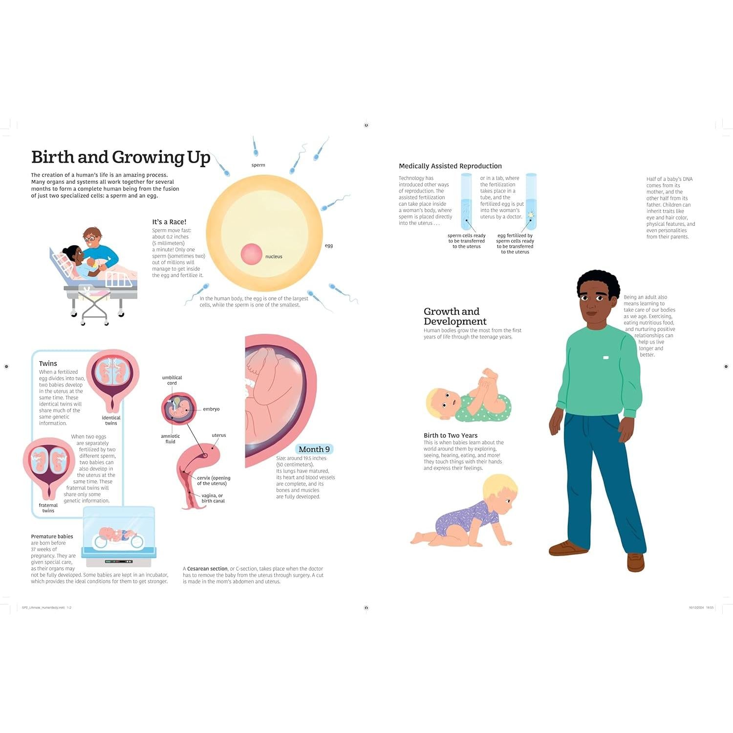 A fascinating interactive overview of the human body and its systems. How do the lungs work together with the heart? Why is the brain such an important part of the body? How are babies made? Covering the stages of life from conception to adulthood, this oversize format includes many flaps, pull tabs, and other interactive elements to help older readers understand how their bodies work.