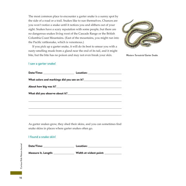 Over 100 colour and scientifically accurate illustrations help kids more easily look for and identify plants and animals, as well as natural phenomena, such as animal tracks and nurse logs. Writing, drawing, and activity prompts inspire kids to record and track their observations.