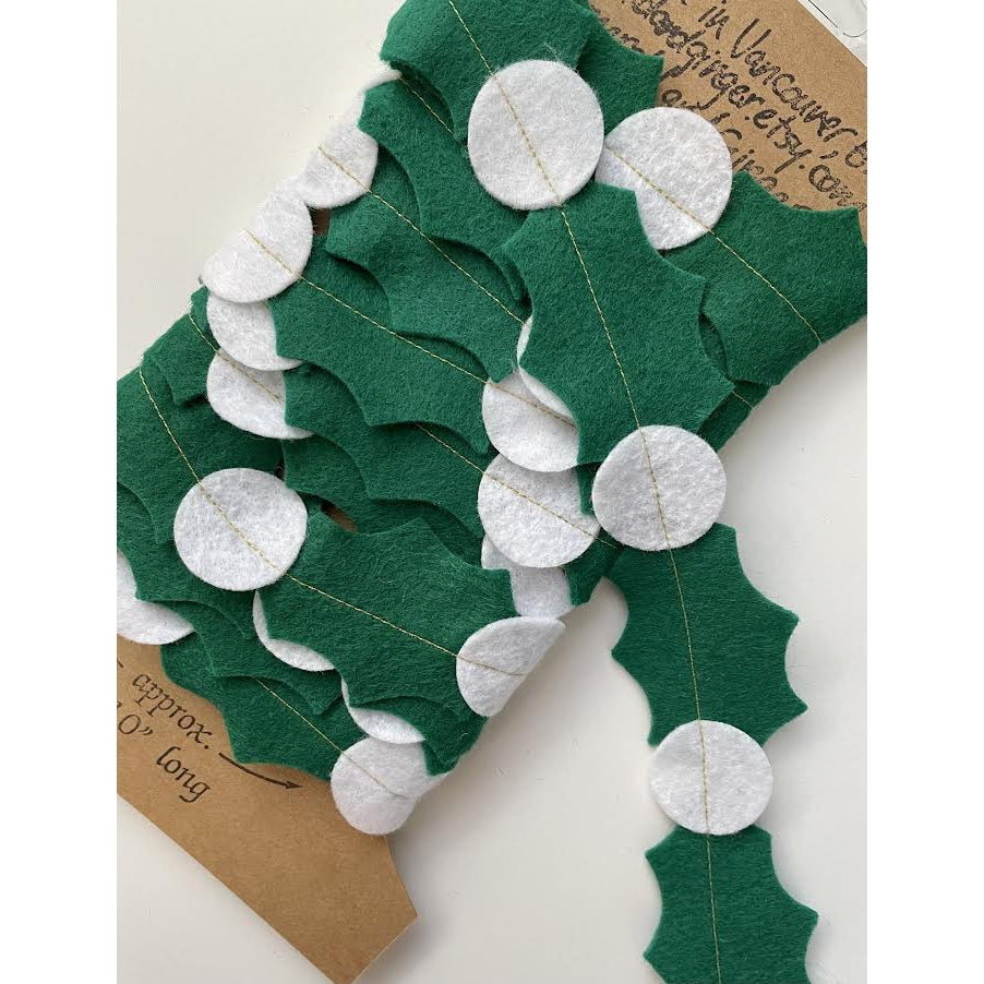 Hand cut and sewn by local Vancouver artist Emerald and Ginger. Each garland measures 110 inches (just over 9 feet) in length and has wool ties on each end for hanging ease. Made with love for you or your little ones!