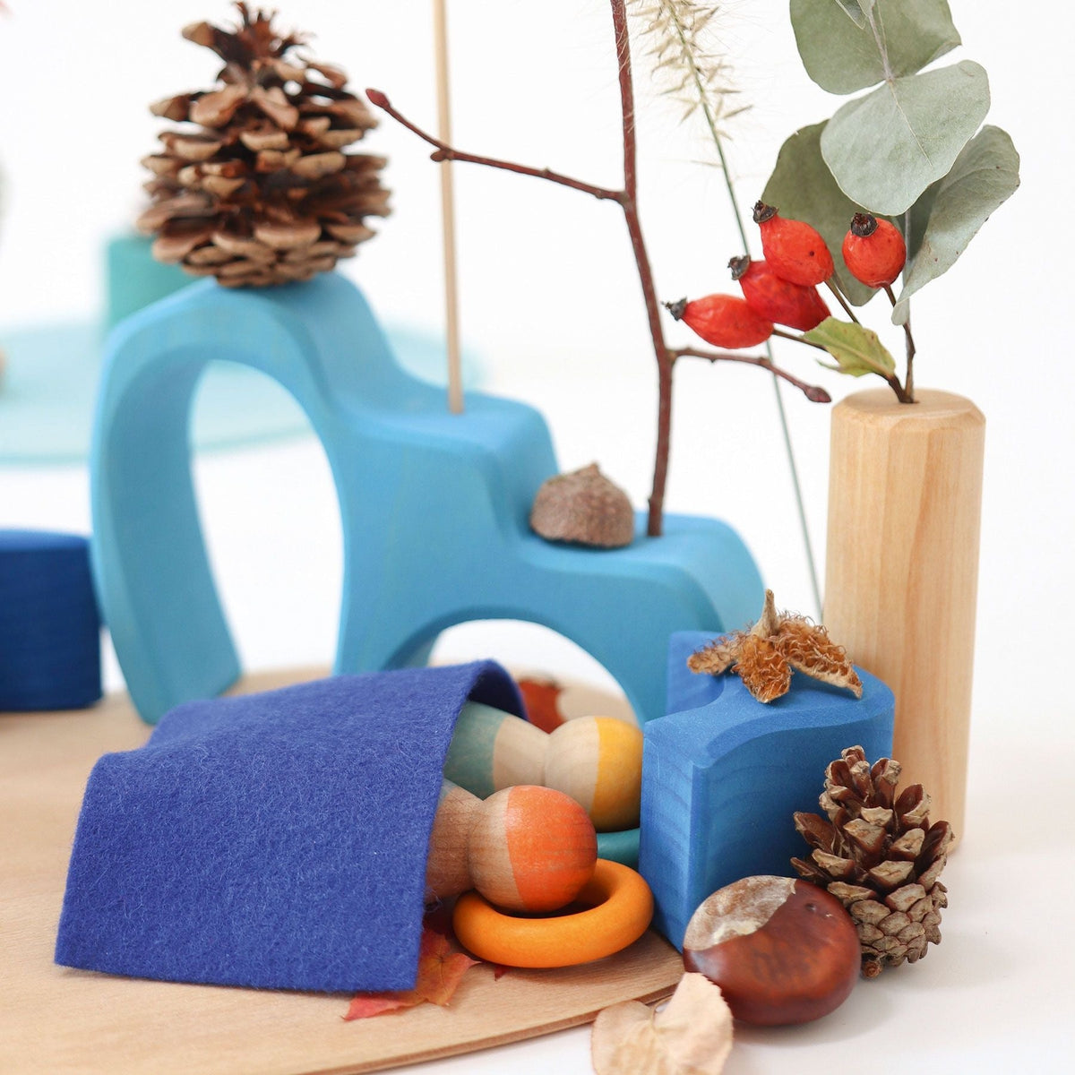 Small World Play are the perfect starter sets for creative play. The Play by the Water set inspires kiddos to build worlds, act out stories, create designs, construct buildings, build marble runs, decorate seasonal tables, and more. Use the string to thread beads, and design faces and emotions. Add natural elements you've collected, such as leaves, sticks, and stones to create miniature beaches and worlds all your own.