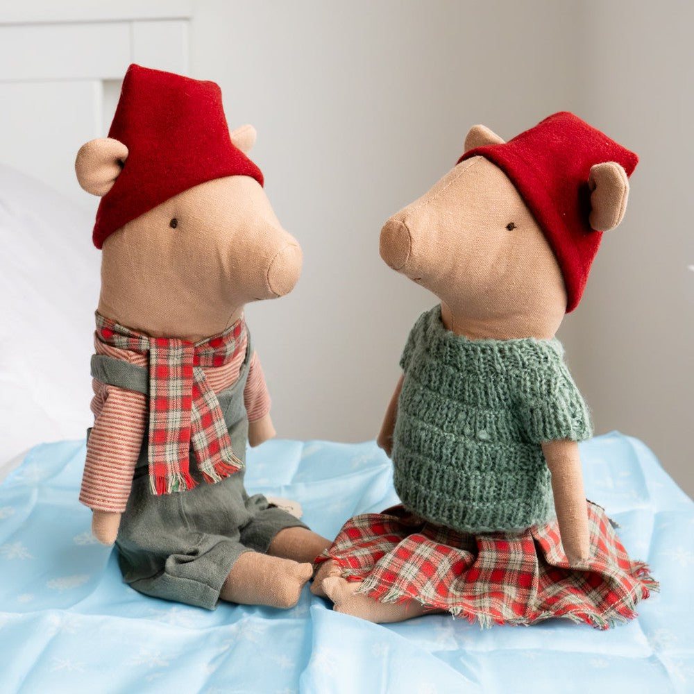 This delightfully outfitted pig is perfect for decorating your home during the holiday season, and also makes a delightful playmate. The hat is removable which allows your little one to enjoy this snuggly pig all year long.