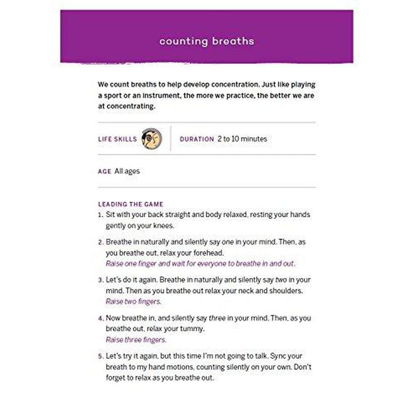 Playing games is a great way for kids to develop their focusing and attention skills and to become more mindful. This card deck helps parents, caregivers, and teachers cultivate these qualities at home or in a school setting. The games develop what Susan Kaiser Greenland calls the "new A, B, C's" for learning and for a happy and successful life: Attention, Balance, and Compassion. In a playful way, the games introduce kids to breathing practices and techniques for developing focus, concentration, and sensory awareness, and identifying and self-regulating emotions, among other skills. They include "anchor" games that develop concentration; visualization games that encourage kindness and focus; analytical games that cultivate clear thinking; and awareness games that develop all of these qualities and give greater insight into ourselves, others, and relationships. The deck contains 55 5X7 illustrated cards, each devoted to one game or activity, and comes in a sturdy, beautifully designed box.