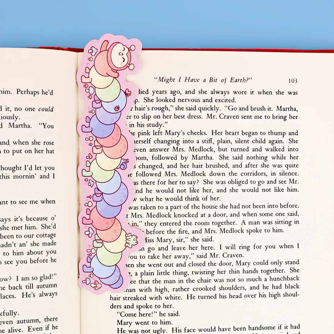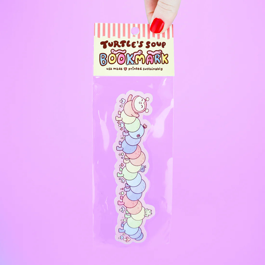 Finding a worm in your book is usually not a good thing, but this rainbow caterpillar is here with a purpose. She wants to hold your spot and read along with you! She’s a bit of a bookworm, you see!