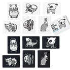 A boxed set includes a bunny, a hamster, a dog, a goldfish, an iguana, and a kitty. Printed on sturdy board, these cards will stand up to baby's explorations. Each 5x7" card is beautifully finished with matte lamination and child-friendly rounded corners.
