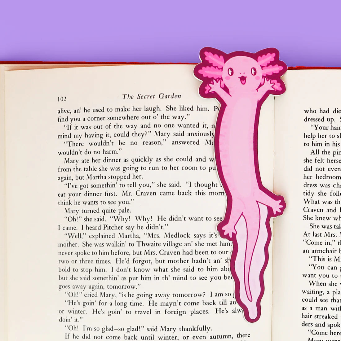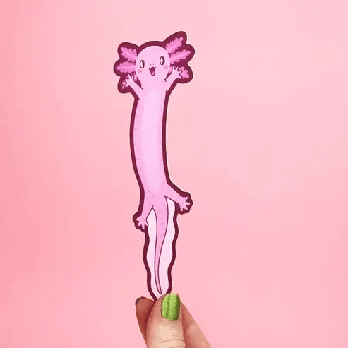 Something is wiggling in your book! Why, it’s a friendly little axolotl here to lend a helping hand and hold your spot. Thanks, little guy!