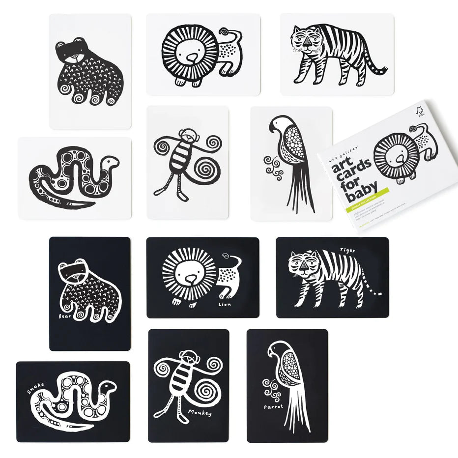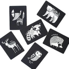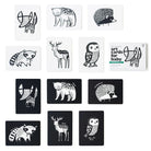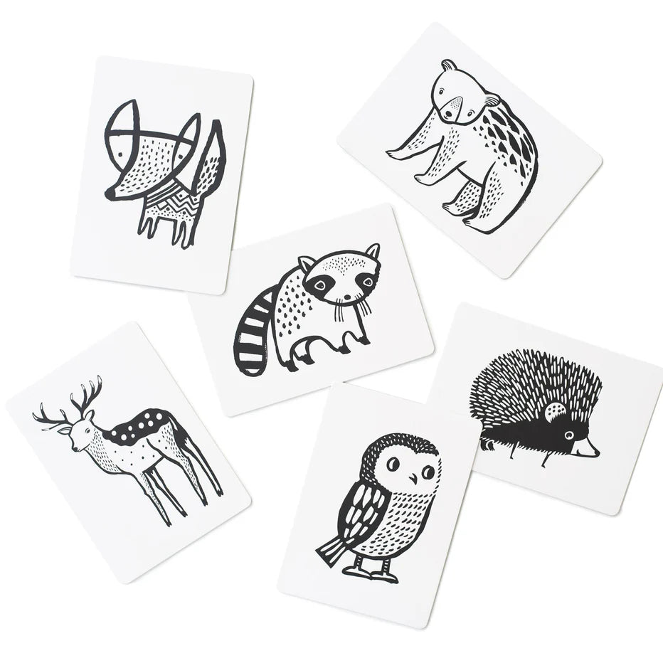 Heavy duty cards illustrated with high-contrast black and white images prove to be a perfect open-ended toy for young infants, who perceive high-contrast images best. The rounded corners, matte lamination and sturdy cardboard make them very durable, while the size makes them easy to grasp and play with. Each set comes six double-sided cards.